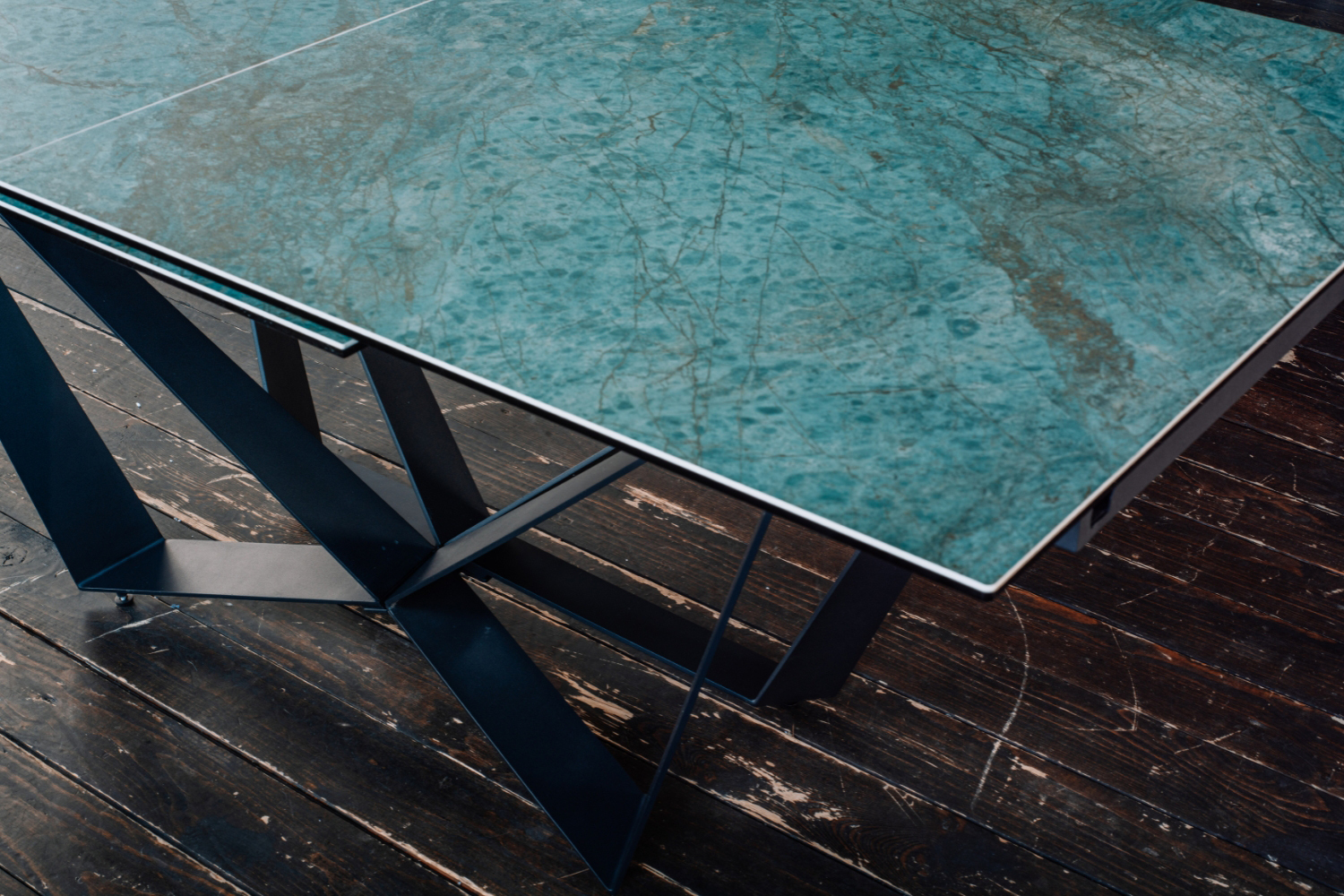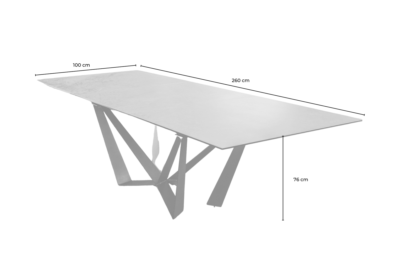 Der ODAR Esstisch von KAWOLA verwandelt Ihr Esszimmer im Handumdrehen in einen Ort der Begegnung und des Genusses. Mit seiner Mischung aus klassischer Eleganz und modernem Industrie-Chic bereichert mühelos jedes Ambiente. Mit einer Länge von 180 cm bietet der Tisch großzügigen Platz. Durch einen innovativen Auszieh-Mechanismus kann er mühelos auf 260 cm erweitert werden. Die Tischplatte aus 3 mm Keramik und 8 mm Glas besticht nicht nur mit ihrem edlen Look, sondern auch mit einer robusten Oberfläche. Das pulverbeschichtete Eisengestell in Schwarz gewährleistet außerdem Stabilität und Langlebigkeit. Der Esstisch ODAR verbindet zeitloses Design mit cleverer Funktionalität und macht aus Ihrem Esszimmer eine wahre Wohlfühloase - für die besonderen Momente im Leben.