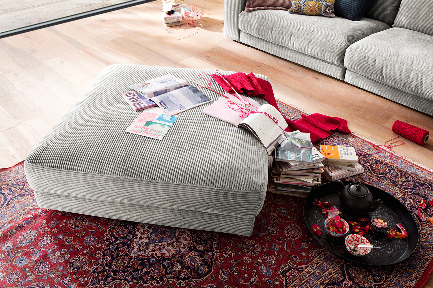 Der KAWOLA Big Hocker MADELINE besticht durch seinen hervorragenden Sitzkomfort, der durch die äußerst legere Polsterung zustande kommt und zum Verweilen und Entspannen einlädt. Seine moderne und urbane Form verleihen dem Polsterhocker sein unverwechselbares Aussehen. Mit seinem zeitlosen Design fügt es sich nahtlos in jede Umgebung ein und macht in jedem Interieur eine gute Figur. Wenn Sie Ihrem Wohnzimmer einen außergewöhnlichen Anstrich verleihen wollen, ist der Big Hocker MADELINE definitiv das Richtige für Sie! Der Hocker ist außerdem die perfekte Ergänzung zu den Cord-Sofas aus der Serie MADELINE.