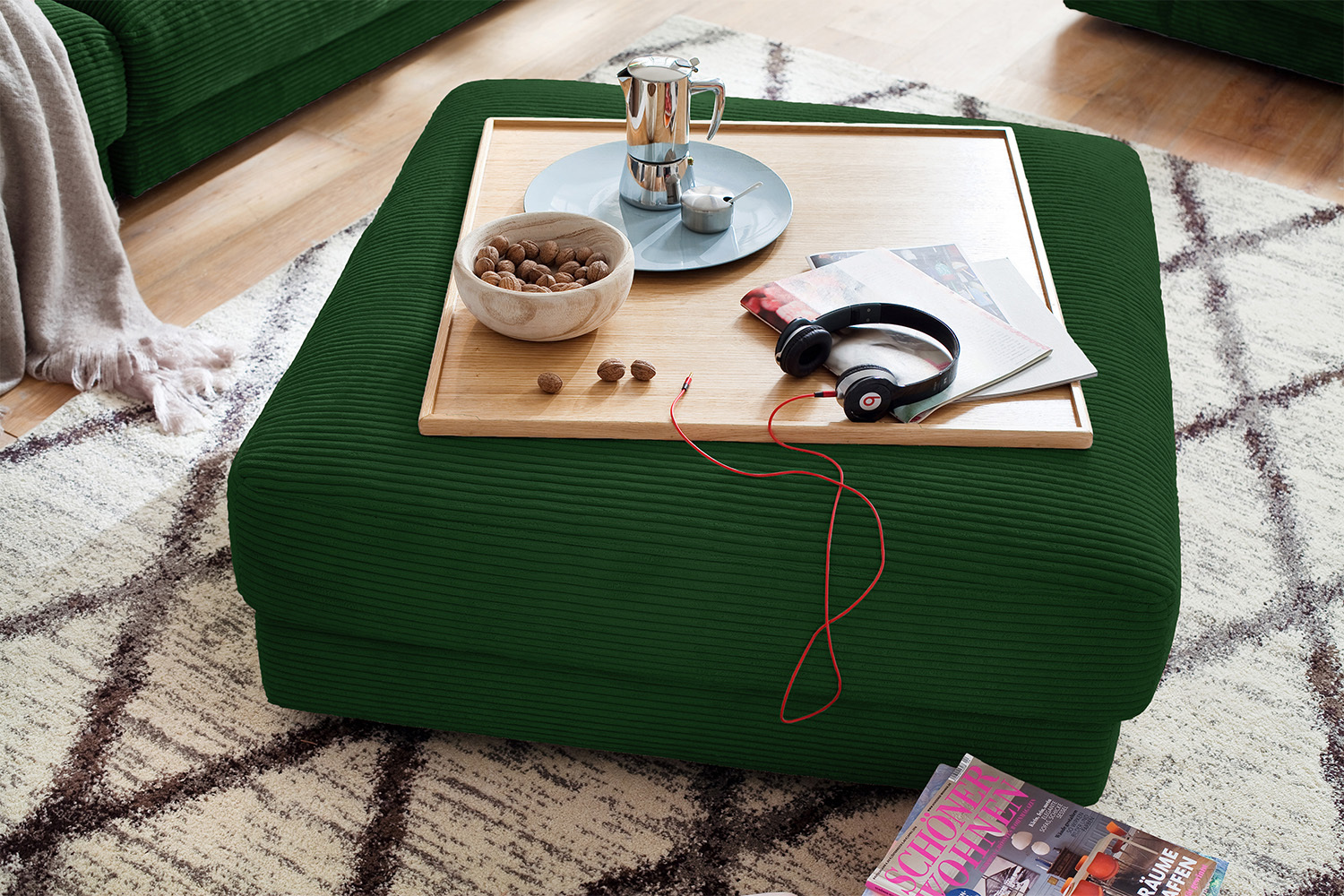 B-Ware KAWOLA Big Hocker MADELINE Polsterhocker Cord hellblau Der KAWOLA Big Hocker MADELINE besticht durch seinen hervorragenden Sitzkomfort, der durch die äußerst legere Polsterung zustande kommt und zum Verweilen und Entspannen einlädt. Seine moderne und urbane Form verleihen dem Polsterhocker sein unverwechselbares Aussehen. Mit seinem zeitlosen Design fügt es sich nahtlos in jede Umgebung ein und macht in jedem Interieur eine gute Figur. Wenn Sie Ihrem Wohnzimmer einen außergewöhnlichen Anstrich verleihen wollen, ist der Big Hocker MADELINE definitiv das Richtige für Sie! Der Hocker ist außerdem die perfekte Ergänzung zu den Cord-Sofas aus der Serie MADELINE.