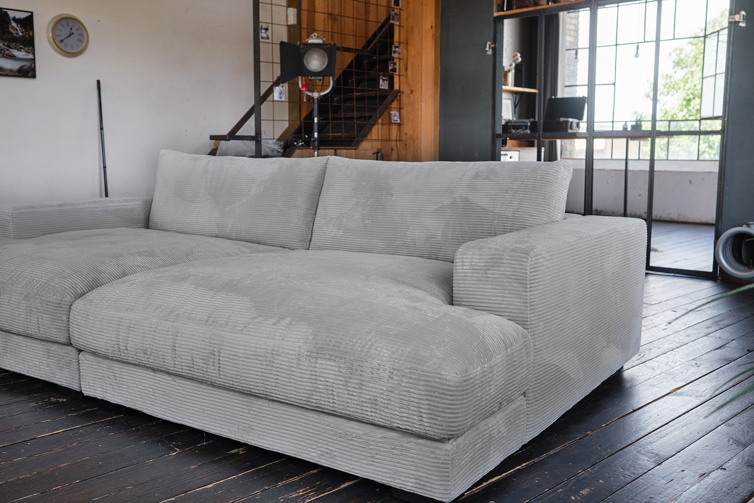 Das einladende Big Sofa MADELINE verwandelt Ihr Zuhause in eine Wohlfühloase. Das XXL Sofa im modernen Design bietet mit seiner großzügigen Fläche ausreichend Platz für entspannte Stunden mit Familie und Freunden. Der Bezug aus weichem Cordstoff sorgt für ein angenehmes Gefühl und verleiht dem Cordsofa eine elegante Note. Die legere Polsterung des Big Sofa Cord passt sich optimal der Körperform an und bietet hervorragenden Komfort. Genießen Sie entspannte Abende auf diesem modernen Sofa. Das Big Sofa ist nicht nur bequem, sondern auch ein echter Hingucker in jedem Wohnzimmer. Seine schlichte Eleganz und die hochwertige Verarbeitung machen es zu einem langlebigen Begleiter. Ob als zentraler Treffpunkt für gesellige Runden oder als gemütlicher Rückzugsort zum Entspannen – dieses XXL Sofa erfüllt alle Wünsche. Das Cordsofa fügt sich harmonisch in verschiedene Einrichtungsstile ein und verleiht jedem Raum eine besondere Note. Das moderne Sofa ist die perfekte Wahl für alle, die Wert auf Komfort, Stil und Qualität legen. Gönnen Sie sich das besondere Wohngefühl mit diesem außergewöhnlichen Möbelstück.