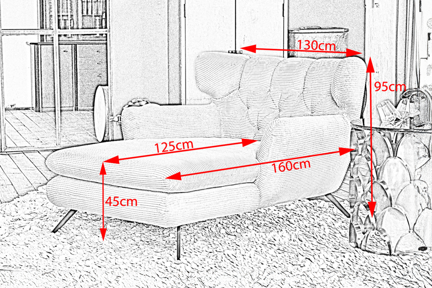 - Sitztiefe: 125 cm