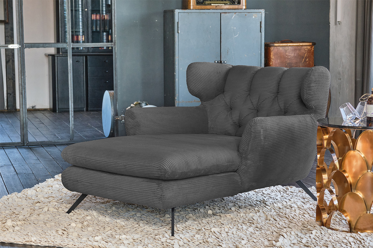 Das Angebot beinhaltet einen Longseat ohne Dekoration und ohne Kissen