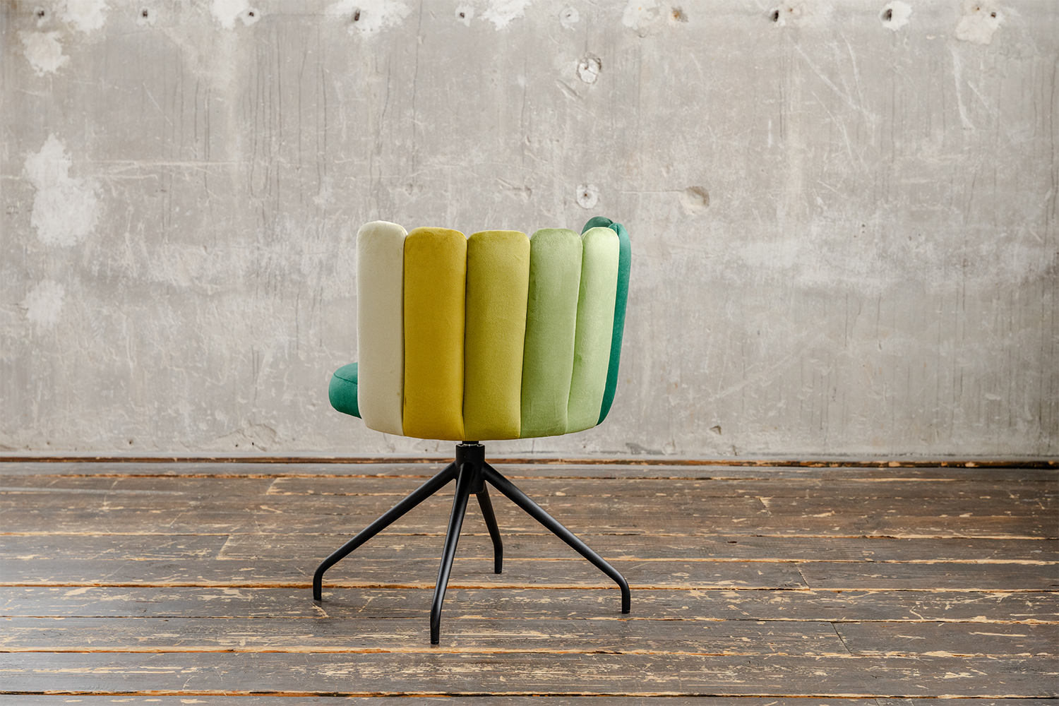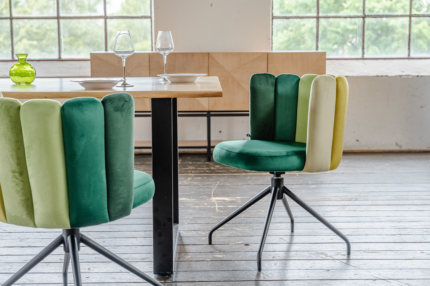 Ein echtes Highlight ist das formschöne 360° drehbare Gestell aus schwarz pulverbeschichtetem Metall, das nicht nur für Stabilität sorgt, sondern auch maximale Bewegungsfreiheit bietet. Die drehbare Konstruktion erleichtert das Aufstehen und Hinsetzen und macht den Stuhl zum idealen Begleiter – ob am Esstisch, im Homeoffice oder im Besprechungsraum.