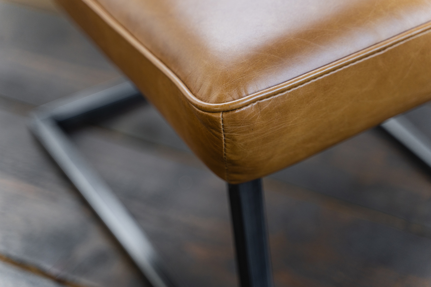 Sitzfläche mit Vintage-Leder bezogen