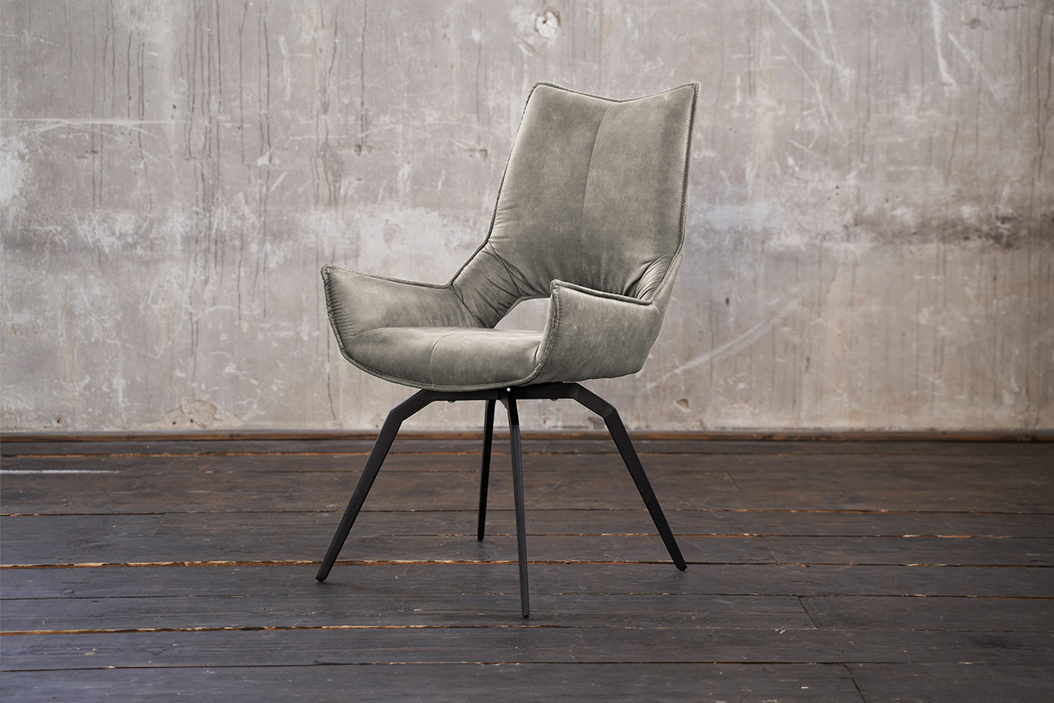 Der Esszimmerstuhl SIVO fällt direkt durch seine Interessante Formgebung ins Auge. Denn sowohl die angenehm gepolsterte Sitzschale, als auch die drehbaren angewinkelten Füße sind außergewöhnlich designt. In der sonst durchgängigen Sitzschale befindet sich eine Aussparung am unteren Teil des unteren Rückens, die den speziellen Look komplettiert. Der Stoffbezug des Drehsessels ist pflegeleicht und zugleich sehr angenehm in der Haptik. Der Polsterstuhl eignet sich wunderbar für den heimischen Ess- oder auch Arbeitsbereich, als Stuhl im Wartebereich oder auch als Besprechungsstuhl im Büro.