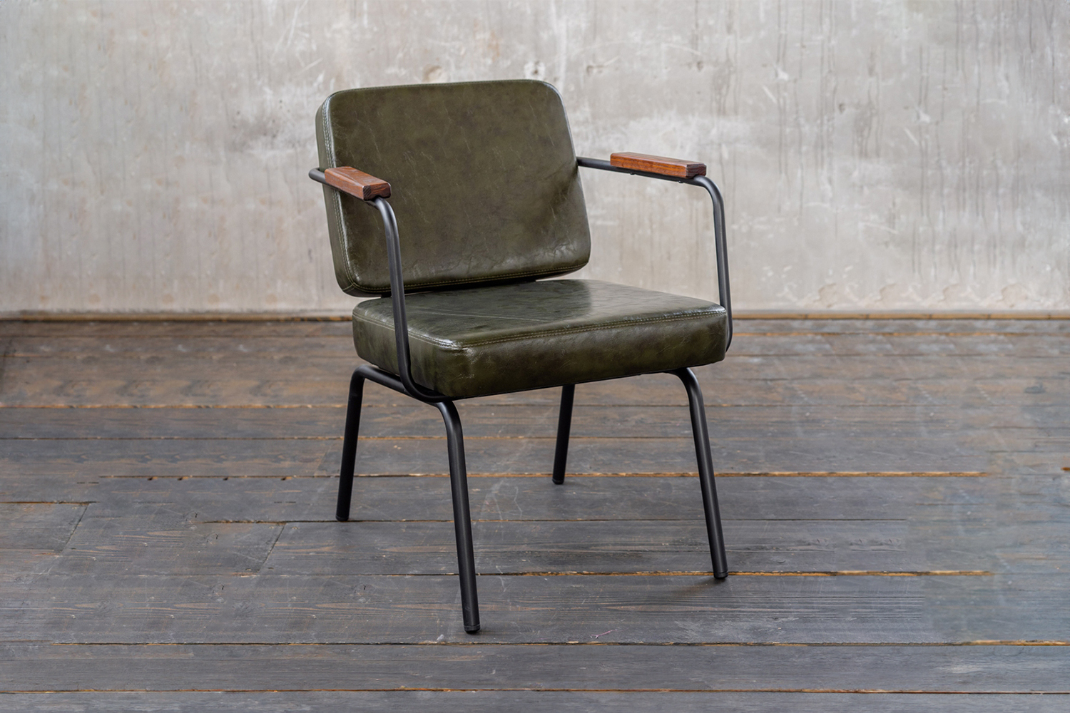 Bei diesem Stuhl handelt es sich um B-Ware aus einer Kundenrücksendung, die gewisse kleinere Mängel aufweist und daher von uns zu einem reduzierten Preis angeboten werden. Mögliche Mängel sind: Kratzer am Gestell, Druckstellen, leichte Verunreinigungen und Farbabweichungen auf der Polsterung sowie Risse im Unterbodenstoff. Bitte schauen Sie sich hierzu die Mängelbilder direkt nach dem Hauptbild an. Diese dienen lediglich der Veranschaulichung möglicher Mängel. Es handelt sich um allgemeine Beispielbilder, die nicht den vorliegenden Artikel darstellen. Der Artikel weist nicht zwangsläufig sämtliche aufgeführten Mängel auf. Auch die auf den Mängelbildern zu sehenden Bezugsstoffe und Farben beziehen sich nicht auf diesen Artikel.Der VISU Stuhl von KAWOLA zeigt sich im angesagten Retro Look. Das Gestell aus Metall ist schwarz lackiert und die Polster sind mit stilechtem, tannengrünem Kunstleder bezogen. Bei diesem Esszimmerstuhl wurde mit viel Liebe zum Detail gearbeitet, zum Beispiel die Armlehnen wurden teilweise mit Holz versehen. Ob Sie nun Retro Liebhaber, oder einfach auf der Suche nach etwas Besonderem für Ihr Esszimmer sind - Stuhl VISU ist immer ein Hingucker.