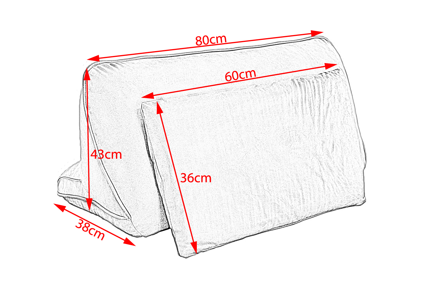 • Maße Rückenkissen: (B/T/H) 80/38/43 cm