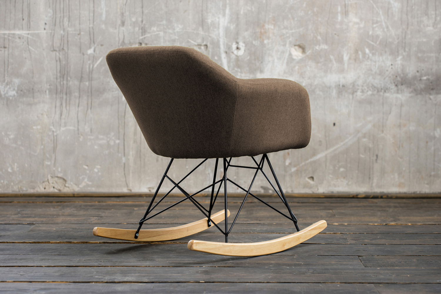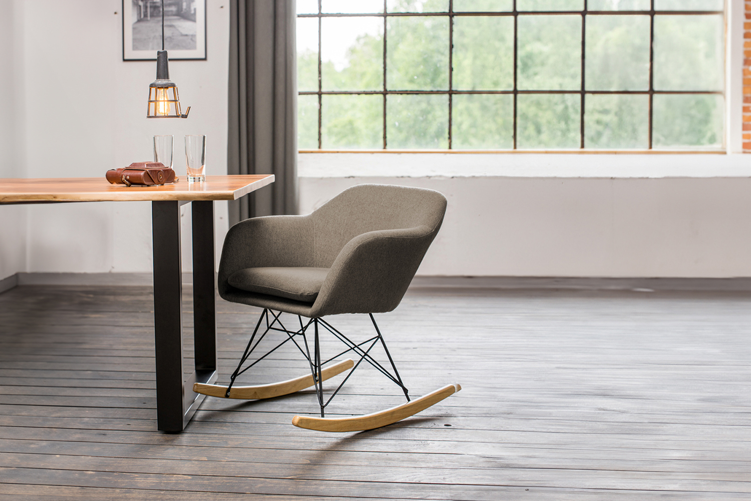 Lange Zeit wurde dem Schaukelstuhl keine Aufmersamkeit zu teil. Erst in der letzten Zeit wurde dieses Thema im Bereich der Möbel wieder neu aufgegriffen und neu interpretiert. Die Eigenschaften des herkömmlichen Schaukelsessels wurden beibehalten und das Äußere bekam ein neues Erscheinungsbild. So auch bei diesem tollen Schaukelstuhl Stella. Der Stuhl ist gemütlich, das Schaukeln wirkt entspannend und man fühlt sich zurückversetzt in die gute alte Zeit. Das Design des Stuhl Stella ist jedoch in der Moderne angekommen und lässt keine Wünsche offen; Der erhöhte Rücken bietet beim gemütlichen Sitzen viel Halt, die Armlehnen tragen zum Sitzkomfort bei und die Form des Schaukelsessels ist gradlinig und klassisch gehalten. Die angenehme Polsterung des Schaukelstuhl wurde überzogen mit einem strapazierfähigen und langlebigen Polyester. Das Gestell des Stuhl wurde aus Metall gefertigt und ist sehr robust und stabil. In einer schönen Ergänzung zum dem braunen Stoff und dem dunklen Metall wurden die Kufen aus Eiche gefertigt. In diesem Schaukelsessel fühlt sich die ganze Familie wohl! Produktdetails
