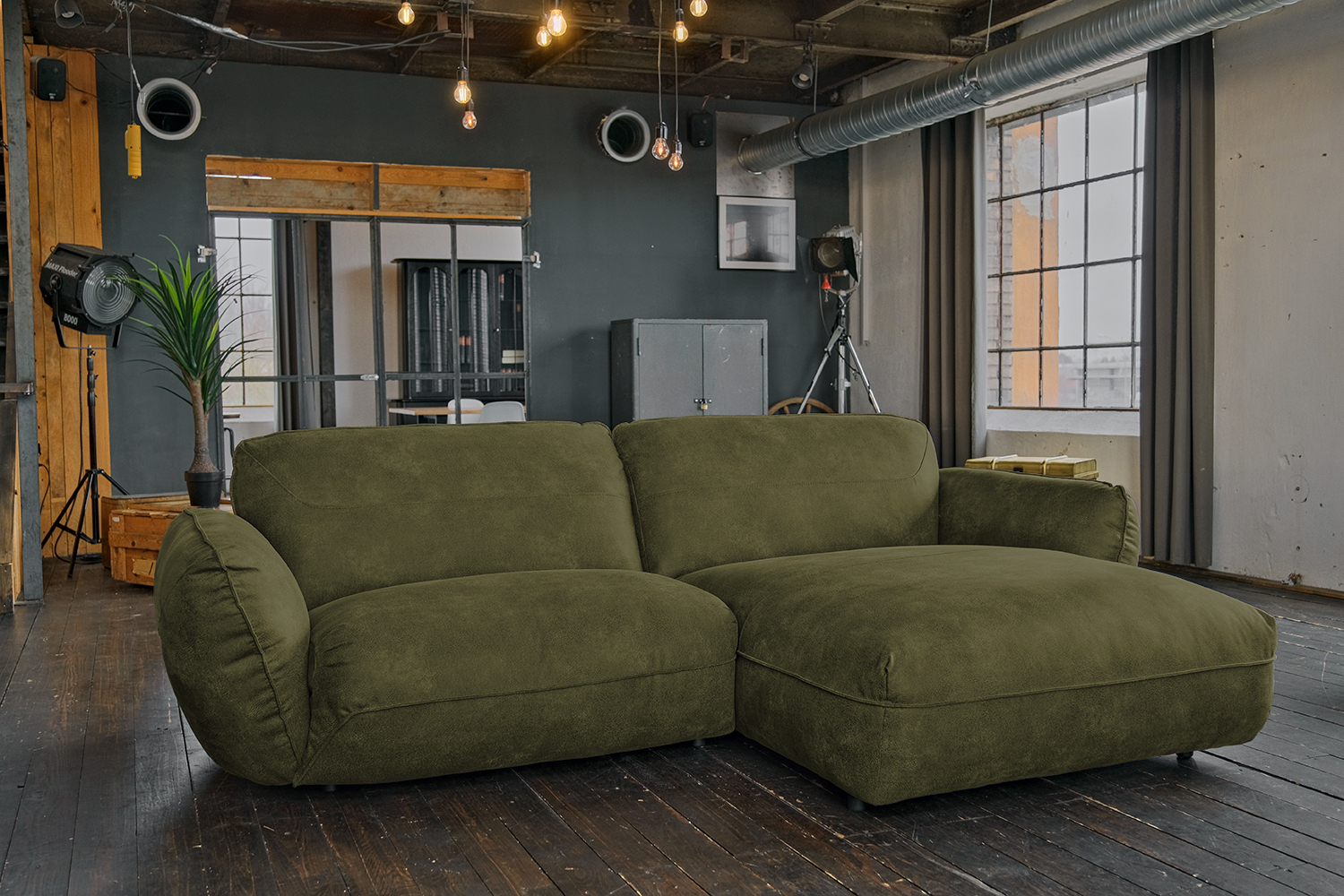 Produktinformationen "B-Ware KAWOLA Sofa DAVITO Ecksofa Lederimitat im Vintagelook olivgrün Recamiere rechts"