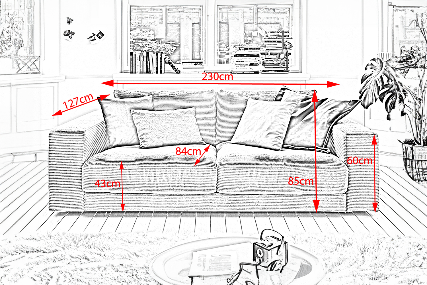 - Sitztiefe: 84 cm