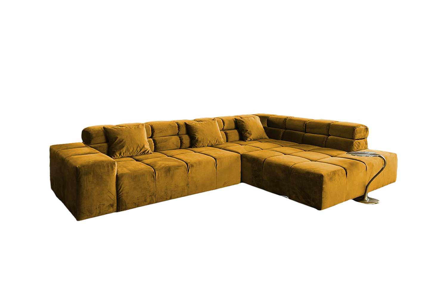 Produktinformationen "B-Ware KAWOLA Sofa NEVADA Ecksofa Velvet curry Recamiere rechts mit motorischem Sitzvorzug"
