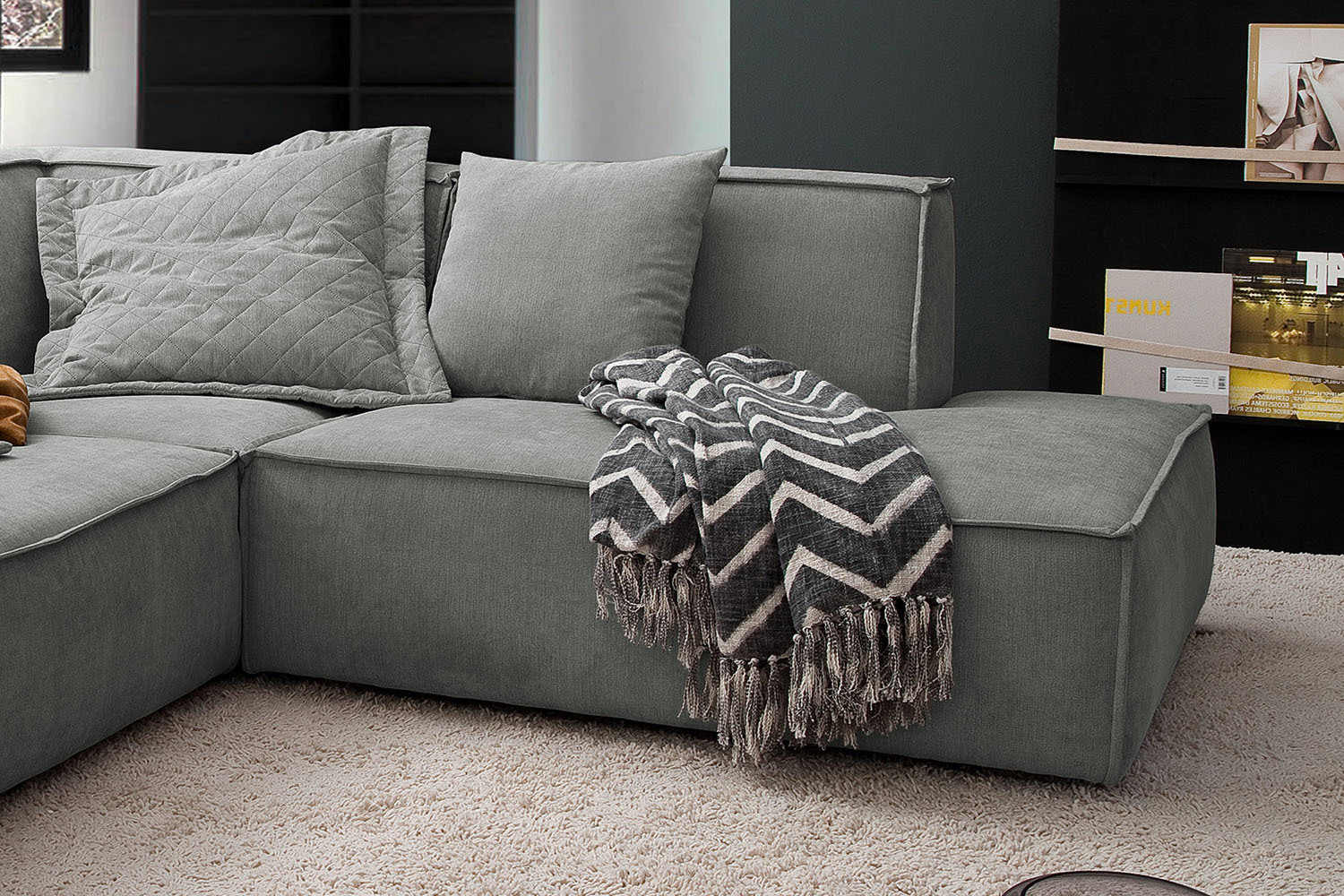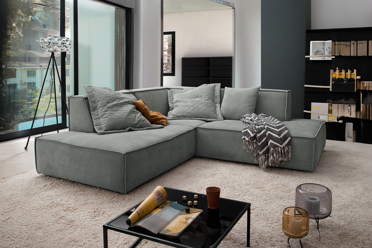 Das KAWOLA Ecksofa SAMU besticht durch seinen hervorragenden Sitzkomfort, der durch den äußerst weichen und legeren Polsteraufbau zustande kommt und zum Verweilen und Entspannen einlädt. Die Polsterung passt sich der Körperform an; Sitzabdrücke sowie Wellenbildung der Bezüge sind warentypisch. Seine moderne und urbane Form verleihen dem Sofa sein unverwechselbares Aussehen und bieten ausreichend Platz, um gemütliche Abende zu verbringen. Mit seinem zeitlosen Design fügt es sich nahtlos in jede Umgebung ein und macht auch frei im Raum stehend eine gute Figur. Wenn Sie Ihrem Wohnzimmer einen außergewöhnlichen Anstrich verleihen wollen, ist das Sofa SAMU definitiv das Richtige für Sie!