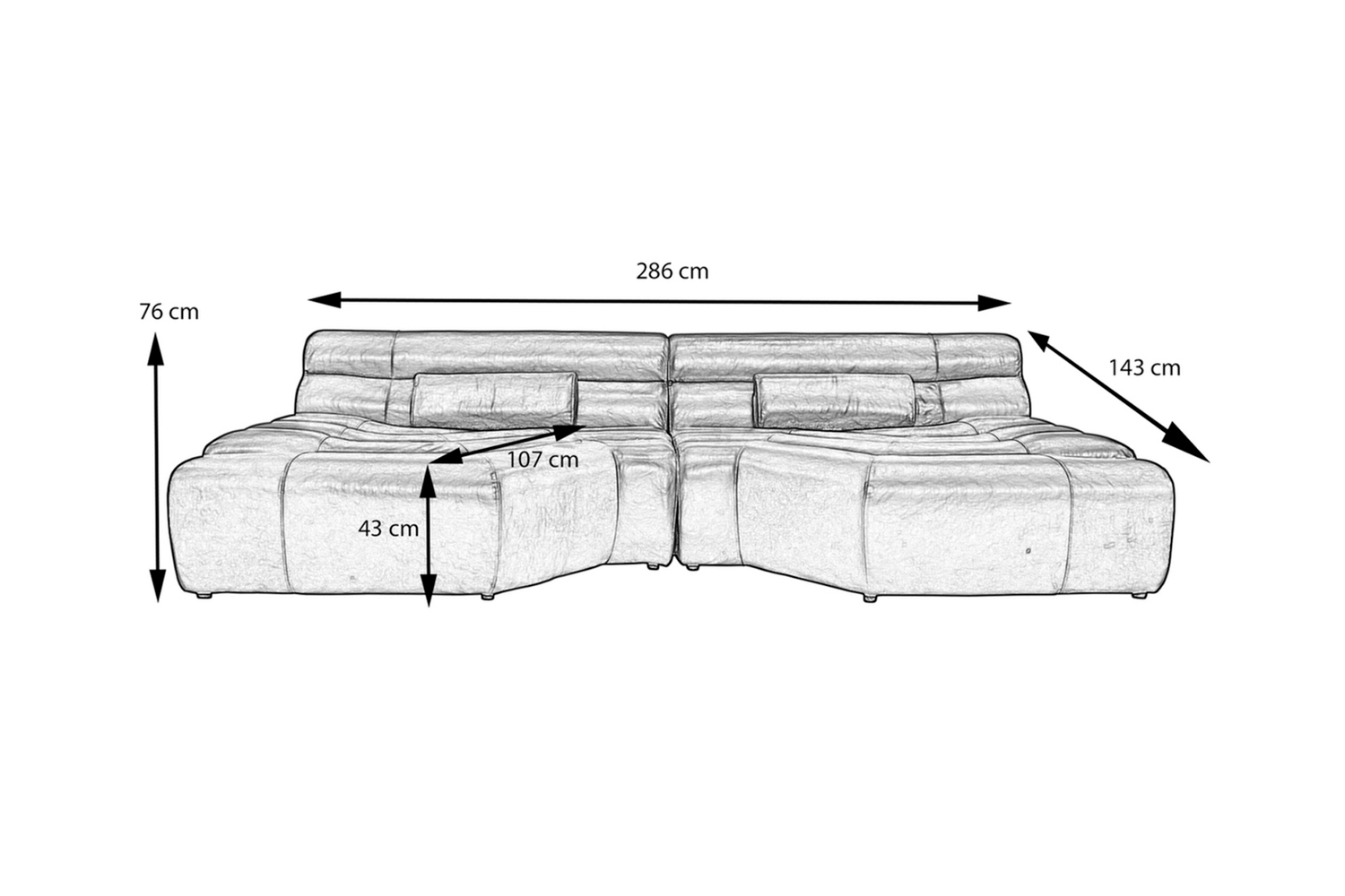 - Sitzbreite: 286 cm