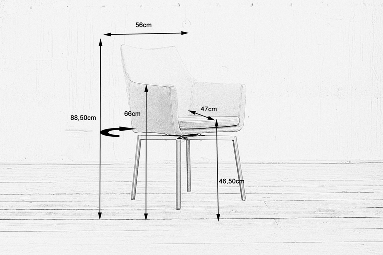 Der Stuhl Cali überzeugt durch sein schlichtes und elegantes Design. Der Esszimmerstuhl vereint das Klassische mit dem Modernen auf gekonnte Art und Weise. Durch sein klassisches und zugleich modernes Aussehen kann der Stuhl Cali in jedes bestehende Wohnambiente integriert werden. Das Gestell in Edelstahl harmonisiert hervorragend mit der Wahl des Bezuges und verleiht dem Stuhl seinen modernen Charakter. Der Clou des Stuhls liegt darin, dass die Sitzschale über eine Drehfunktion verfügt. Ganz gleich ob im Esszimmer, im Konferenzraum oder im Wartebereich der Stuhl Cali macht überall eine gute Figur.
