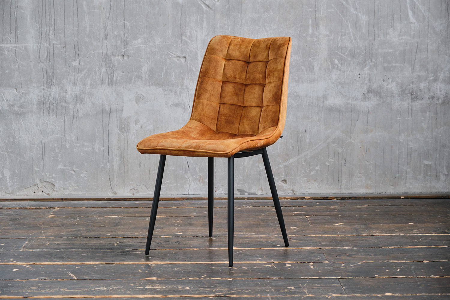 Der Stuhl CLARA vereint industrielles und modernes Wohndesign. Hier können Sie sich bequem zurücklehnen und stilvoll speisen. Der Bezugsstoff aus Velvet ist sehr hochwertig verarbeitet und die aufwendige Absteppung verleiht dem Stuhl seinen besonderen Look. Ob im Büro oder im Esszimmer - der Stuhl CLARA eignet sich aufgrund seines modernen Designs für praktisch jeden Wohnbereich.