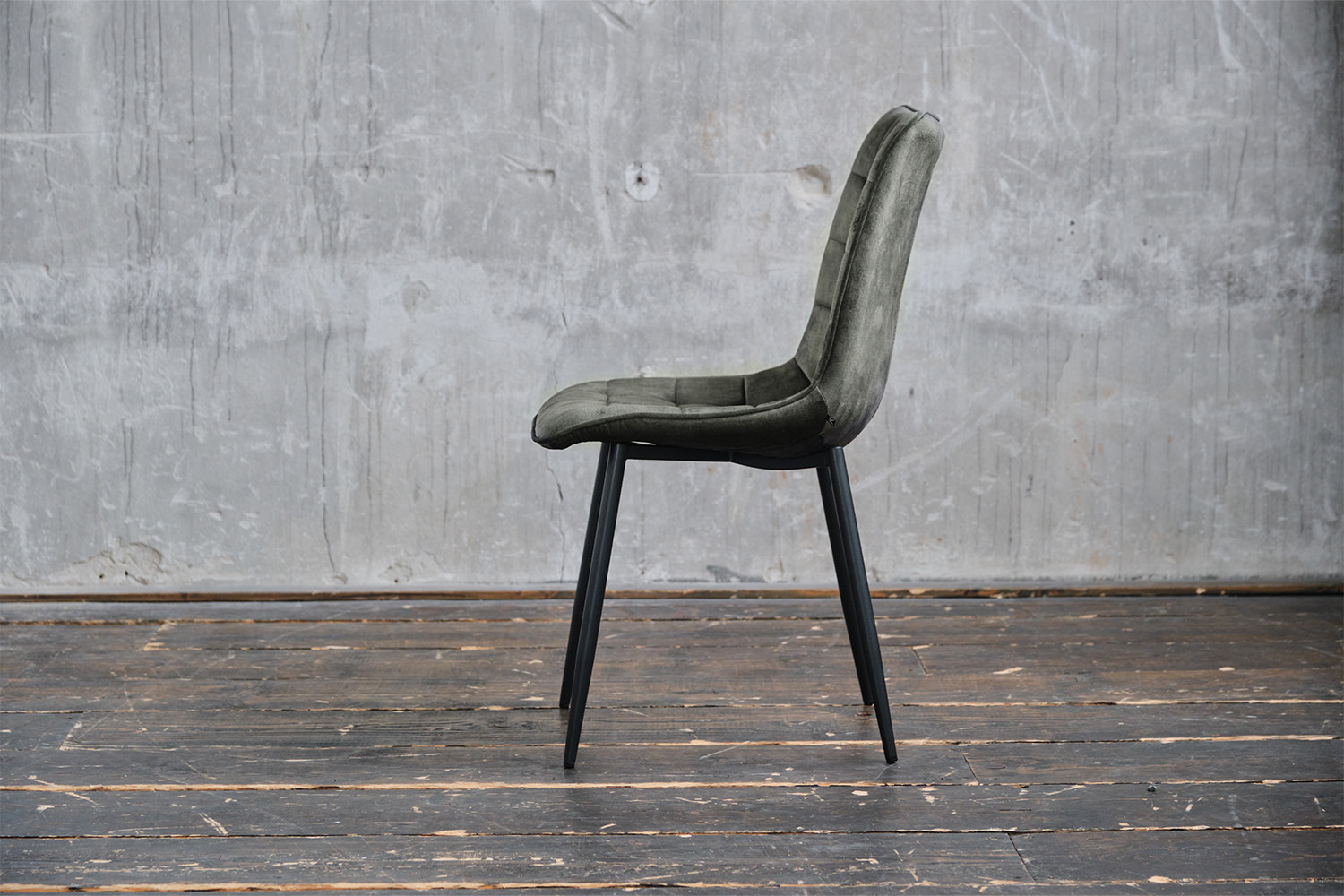 Der Stuhl CLARA vereint industrielles und modernes Wohndesign. Hier können Sie sich bequem zurücklehnen und stilvoll speisen. Der Bezugsstoff aus Velvet ist sehr hochwertig verarbeitet und die aufwendige Absteppung verleiht dem Stuhl seinen besonderen Look. Ob im Büro oder im Esszimmer - der Stuhl CLARA eignet sich aufgrund seines modernen Designs für praktisch jeden Wohnbereich.