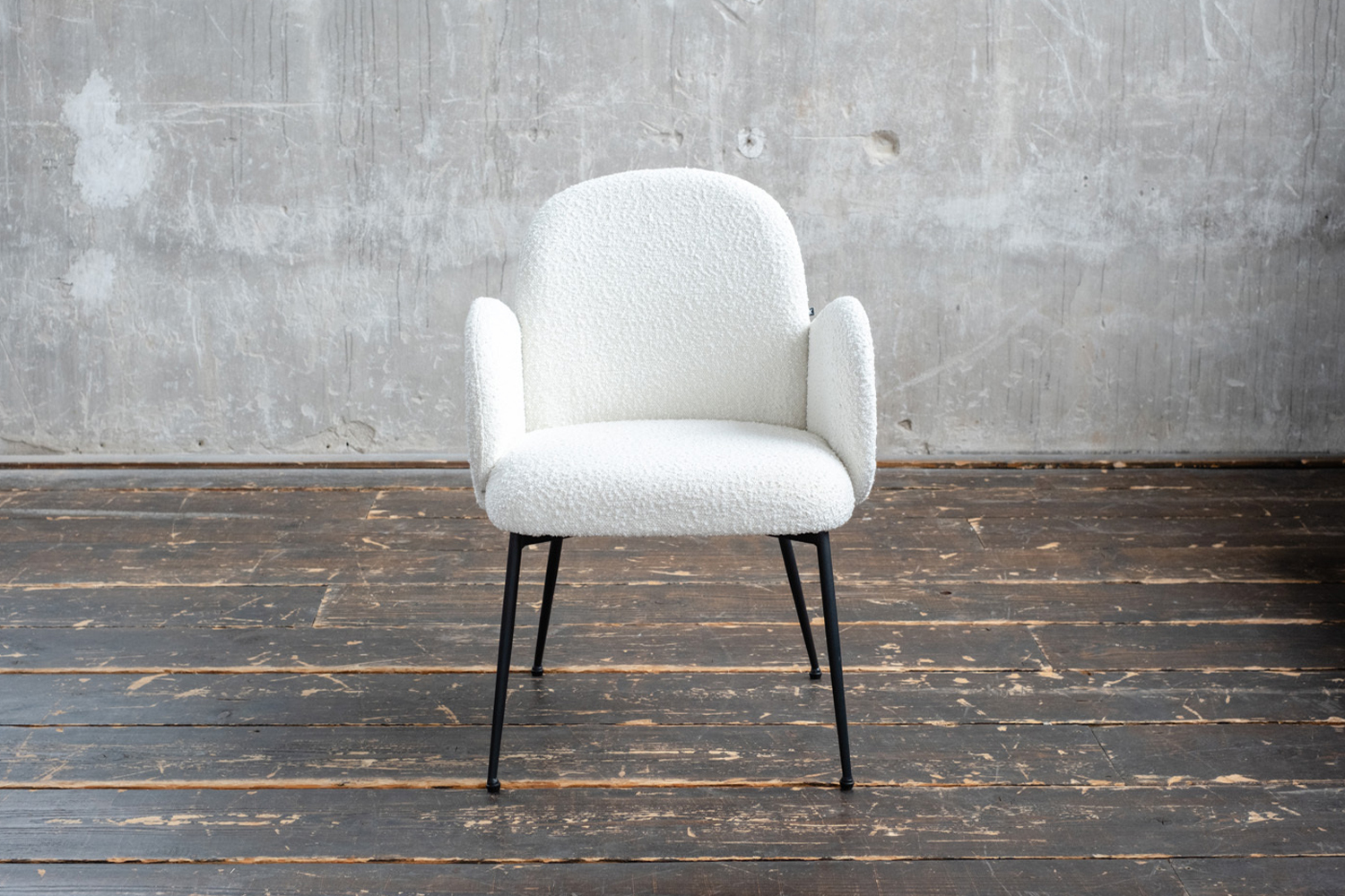 Bei diesem Stuhl handelt es sich um B-Ware aus einer Kundenrücksendung, die gewisse kleinere Mängel aufweist und daher von uns zu einem reduzierten Preis angeboten werden. Mögliche Mängel sind: Kratzer am Gestell, Druckstellen, leichte Verunreinigungen und Farbabweichungen auf der Polsterung sowie Risse im Unterbodenstoff. Bitte schauen Sie sich hierzu die Mängelbilder direkt nach dem Hauptbild an. Diese dienen lediglich der Veranschaulichung möglicher Mängel. Es handelt sich um allgemeine Beispielbilder, die nicht den vorliegenden Artikel darstellen. Der Artikel weist nicht zwangsläufig sämtliche aufgeführten Mängel auf. Auch die auf den Mängelbildern zu sehenden Bezugsstoffe und Farben beziehen sich nicht auf diesen Artikel.Der DEON Esszimmerstuhl von KAWOLA vereint zeitloses Design und unschlagbaren Komfort, wodurch er zum Herzstück Ihres Essbereichs wird. Der Bouclé-Bezug verleiht dem Stuhl eine besondere Anziehungskraft mit seiner gewellten Oberfläche. Großzügige Abmessungen (59 cm Breite, 62 cm Tiefe, 84 cm Höhe) ermöglichen eine perfekte Integration in verschiedene Raumgrößen. Die ergonomische Sitzhöhe von 48 cm und die großzügige Sitztiefe von 48 cm versprechen stundenlangen Komfort.