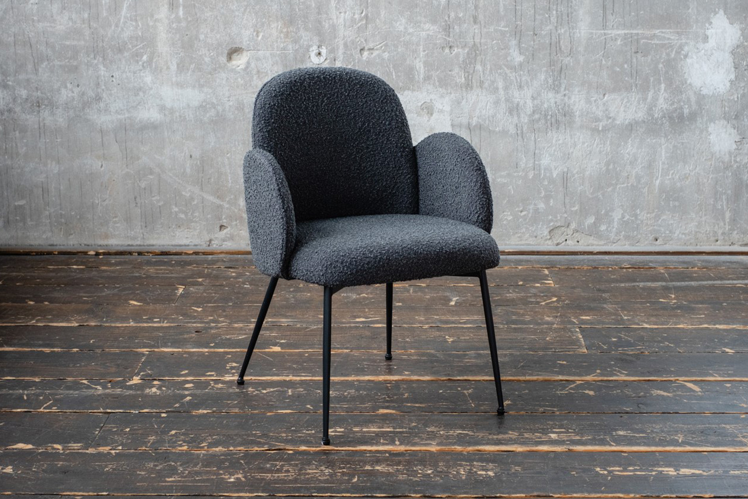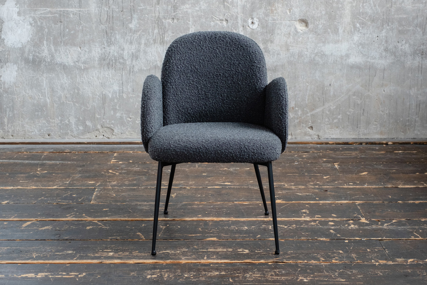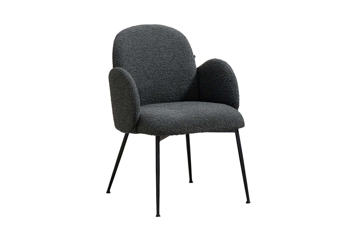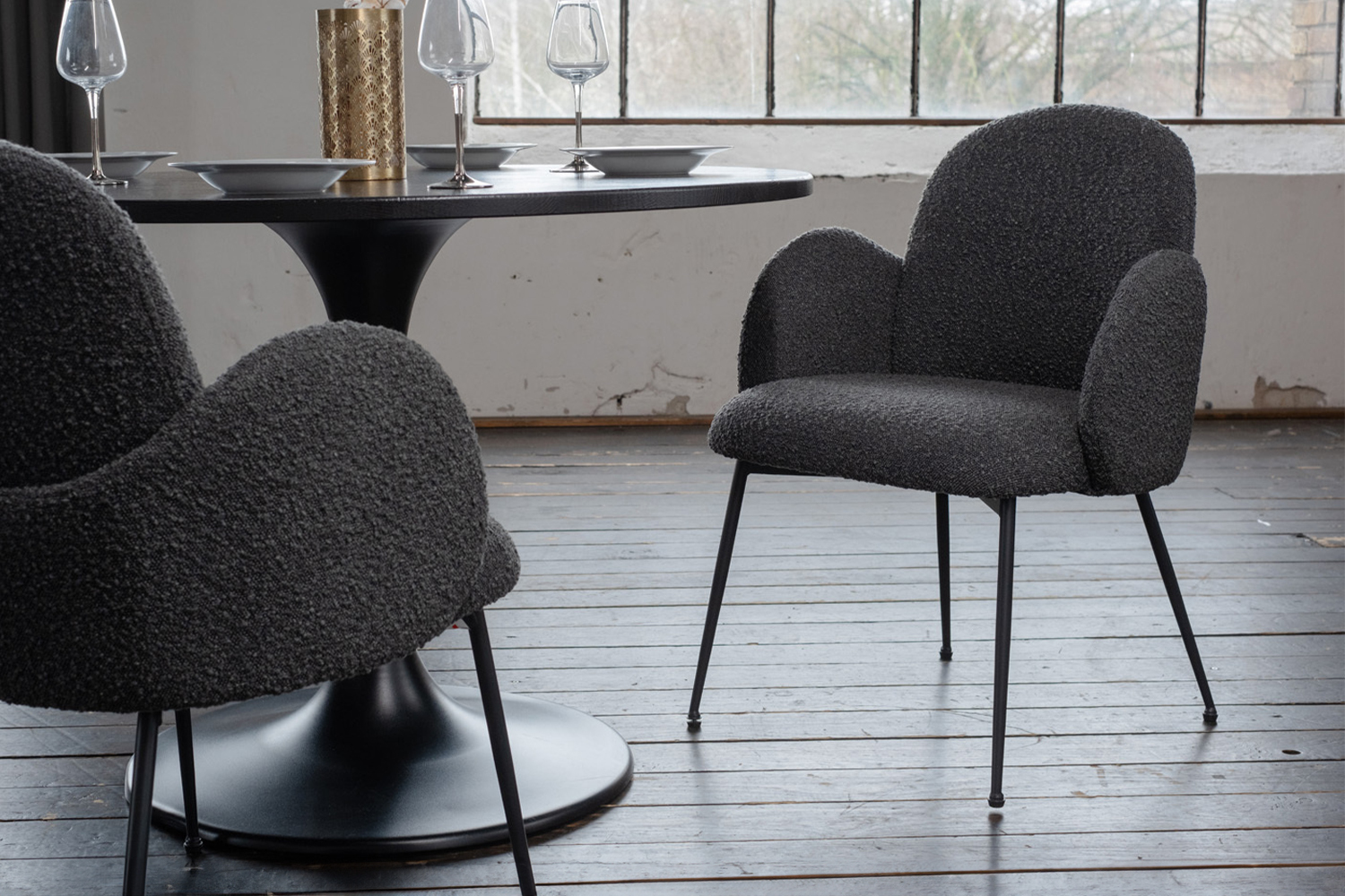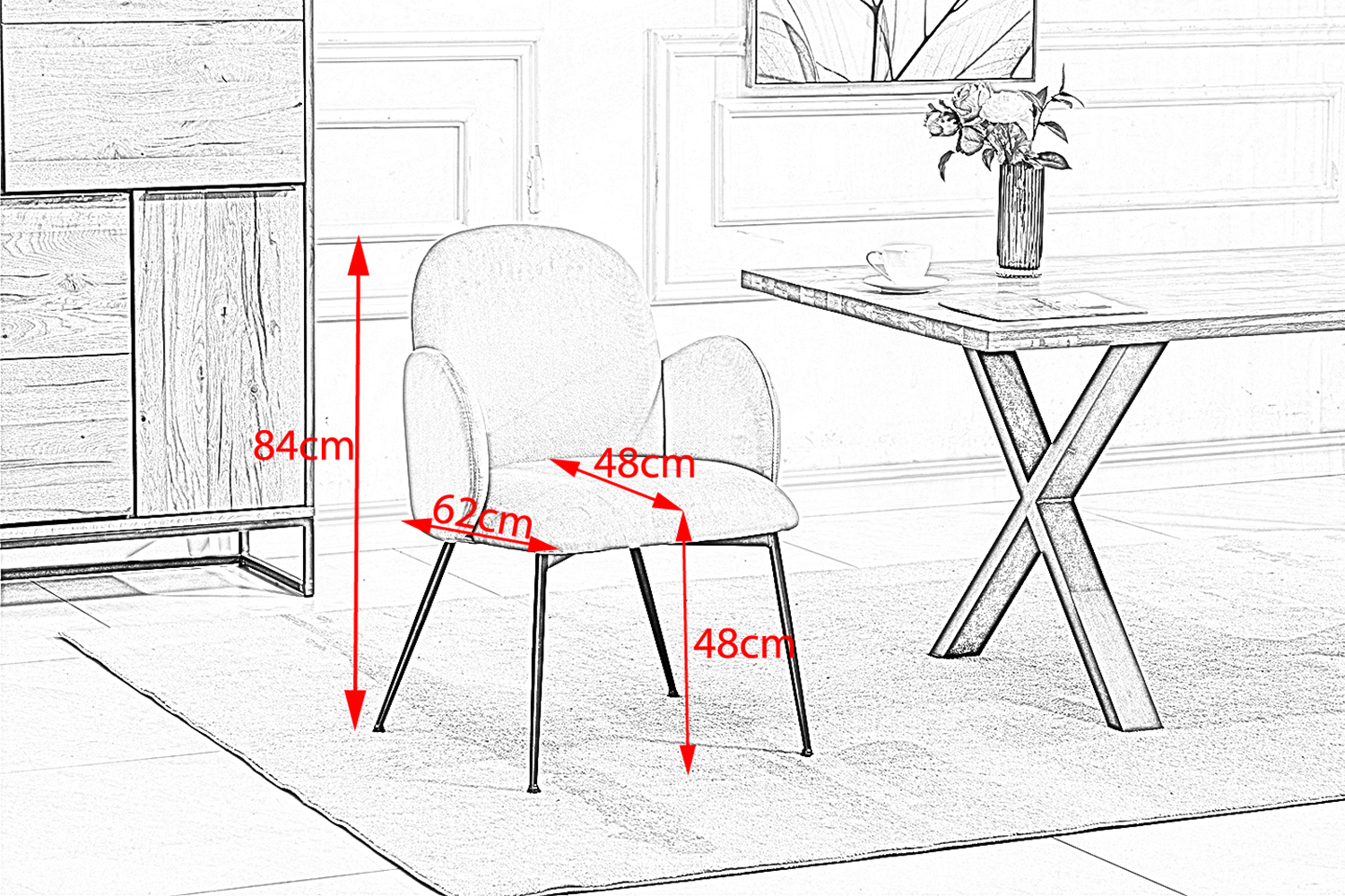 Neben seinem ansprechenden Design bietet der DEON Esszimmerstuhl herausragenden Sitzkomfort. Die geschwungenen Linien und gepolsterten Armlehnen unterstützen Ihre Körperhaltung, laden zu längeren Mahlzeiten und angeregten Gesprächen ein. Die pulverbeschichteten schwarzen Stahlbeine gewährleisten Stabilität und verleihen dem Stuhl eine moderne Ästhetik.