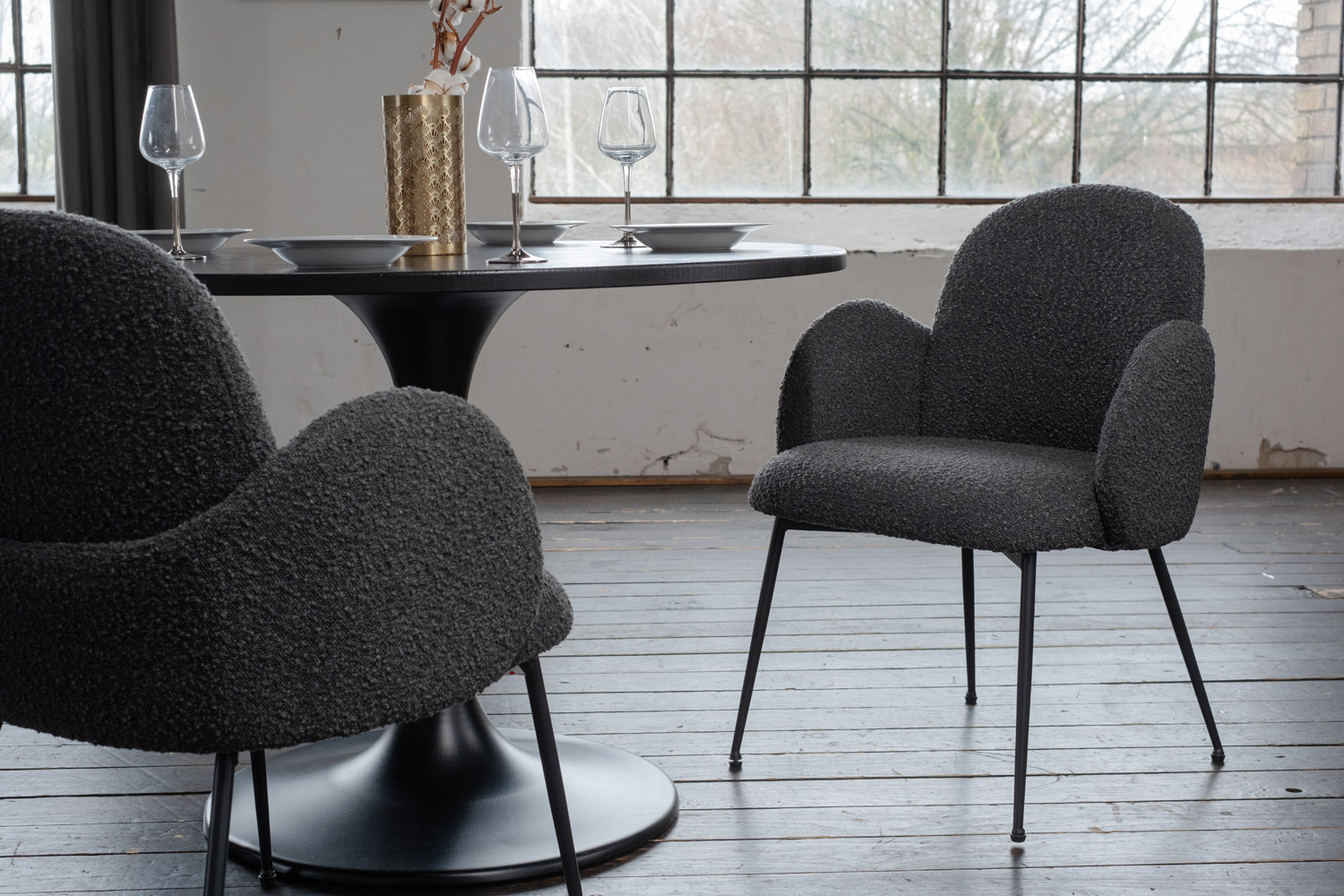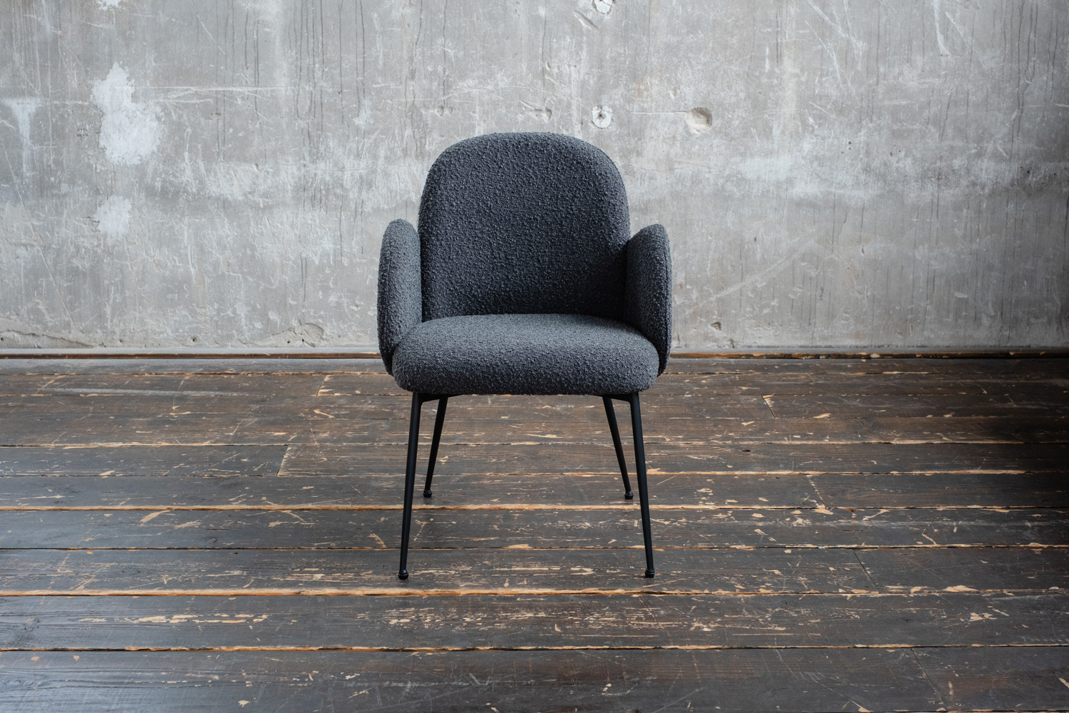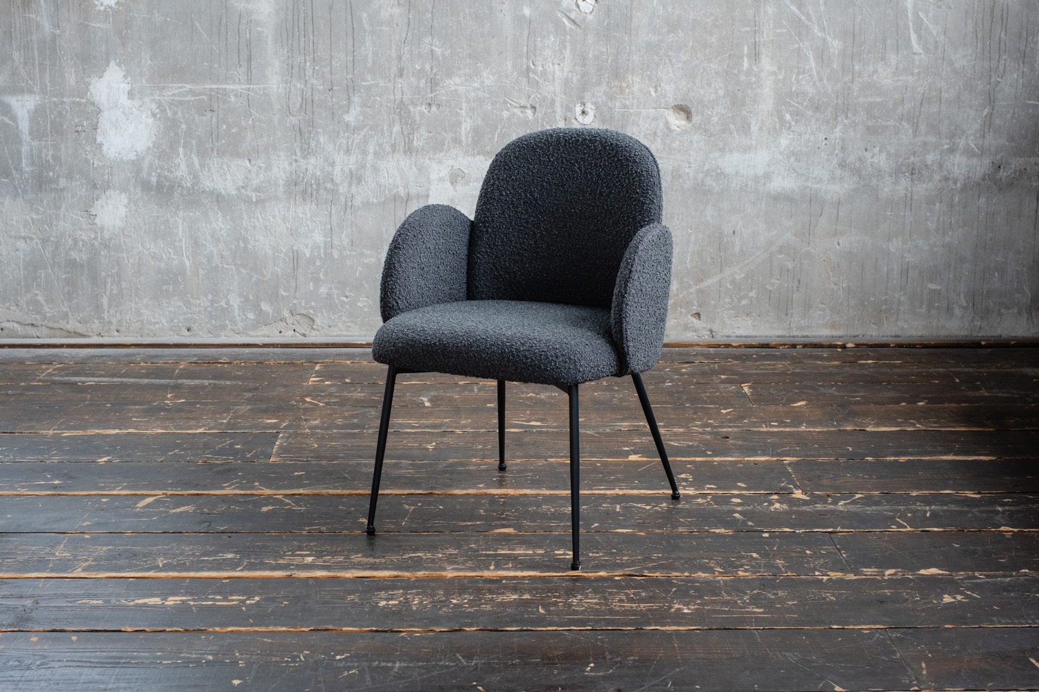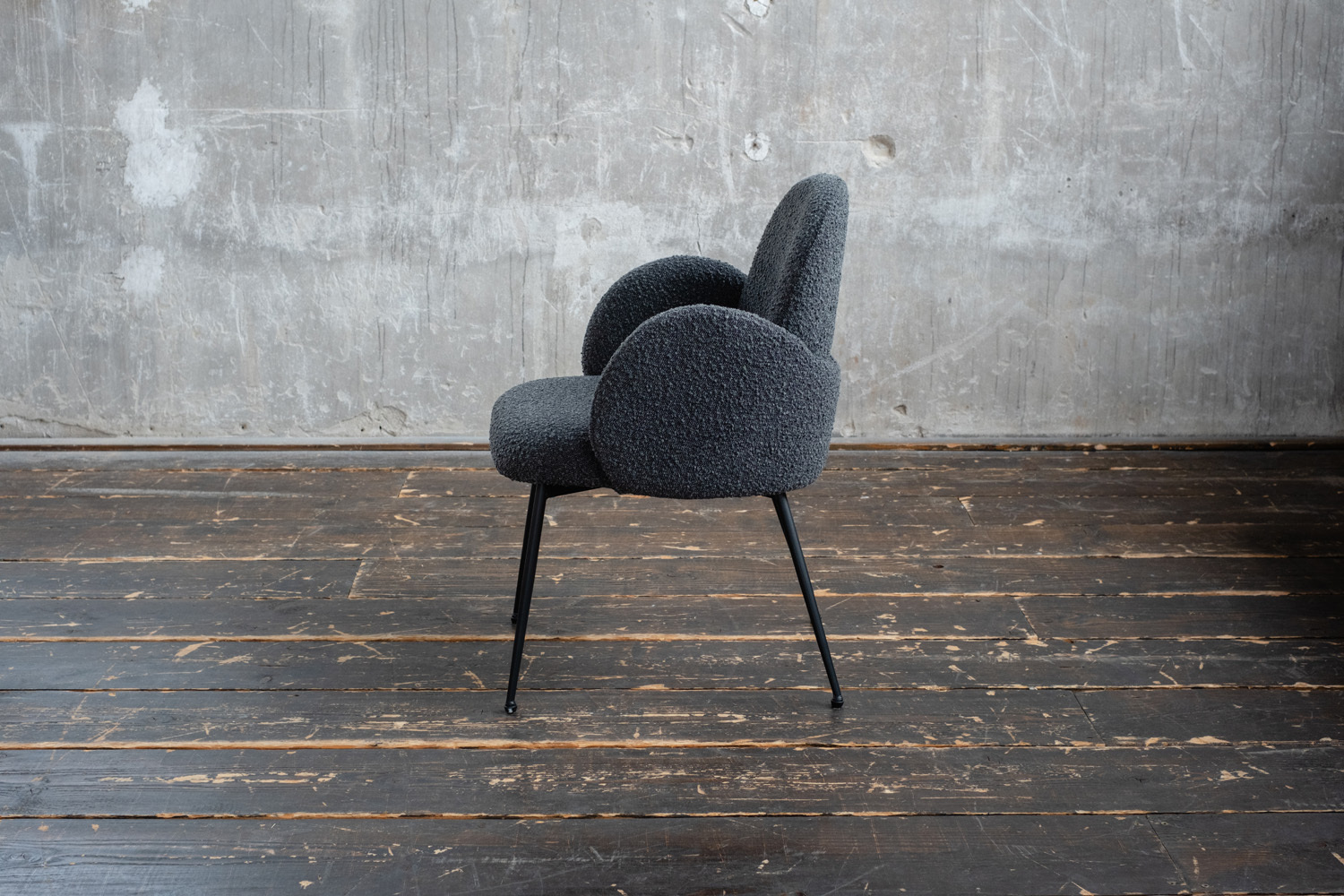 • Sitzschale: Bezug aus hochwertigem Bouclé-Stoff