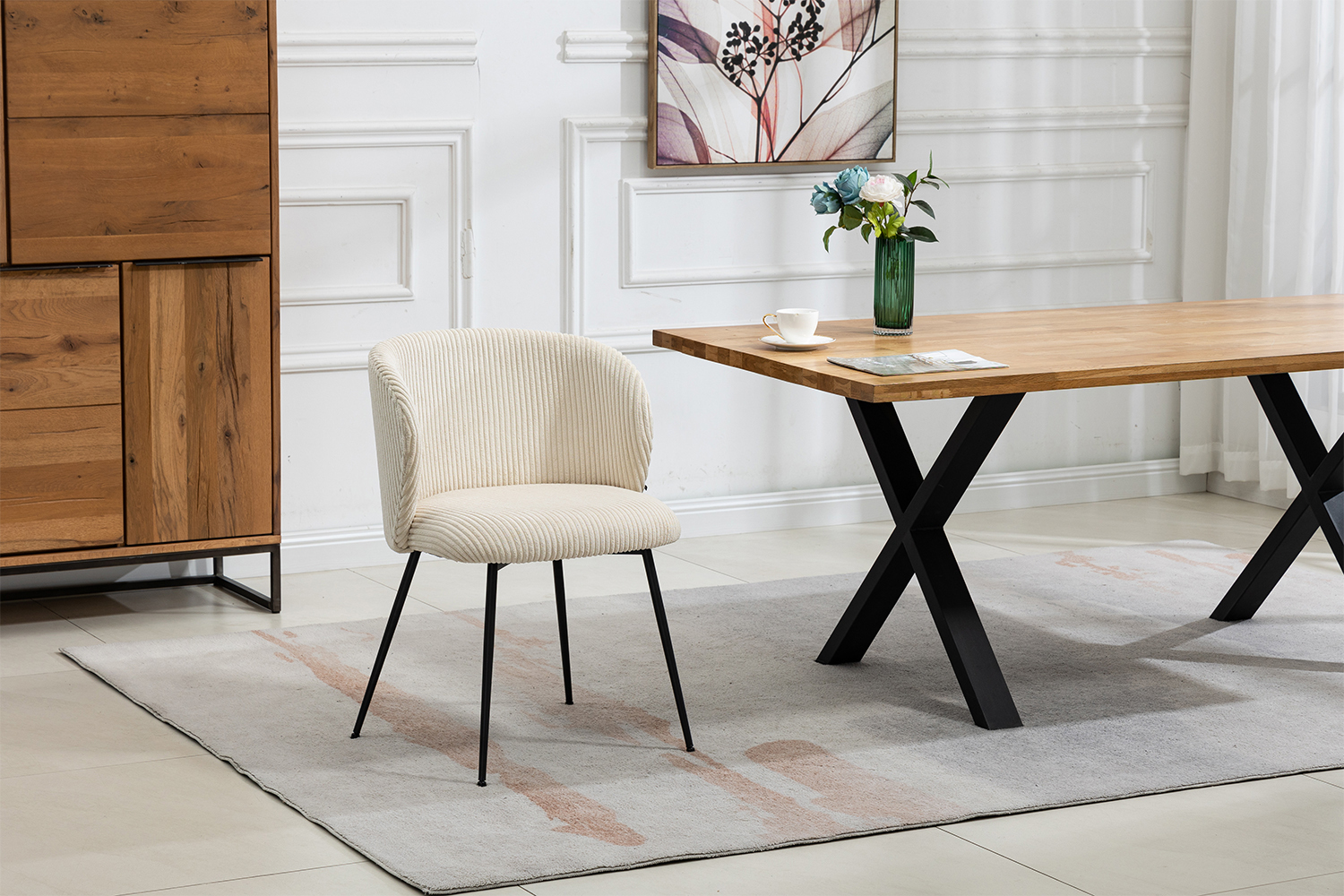 Entdecken Sie den LENA Esszimmerstuhl von KAWOLA - zeitlose Eleganz und exzellenter Komfort. Der angesagtem Cord-Stoff verleiht stilvolle Akzente und lädt zu gemütlichen Stunden am Esstisch ein. Mit präziser Maßarbeit beeindruckt der Stuhl durch ästhetisches Design. Abmessungen von 53 cm Breite, 53 cm Tiefe und 78 cm Höhe passen ideal zu verschiedenen Tischhöhen. Sitzhöhe von 48 cm und Sitztiefe von 43 cm bieten angenehmen Komfort und unterstützen eine aufrechte Haltung. Der LENA Stuhl begeistert mit klaren Linien und minimalistischem Design. Ohne Armlehnen bietet er flexible Sitzmöglichkeiten mit festem Halt. Die Füße aus pulverbeschichtetem, schwarzem Stahl verleihen Stabilität und raffinierte Optik. LENA bereichert Ihren Wohnraum als Einzelstück oder im Duo und schafft eine einladende Atmosphäre. Erleben Sie mit dem LENA Esszimmerstuhl von KAWOLA die perfekte Symbiose aus Stil und Komfort. Bestellen Sie ihn noch heute und verwandeln Sie Ihr Zuhause in eine Wohlfühloase.Produktdetails
