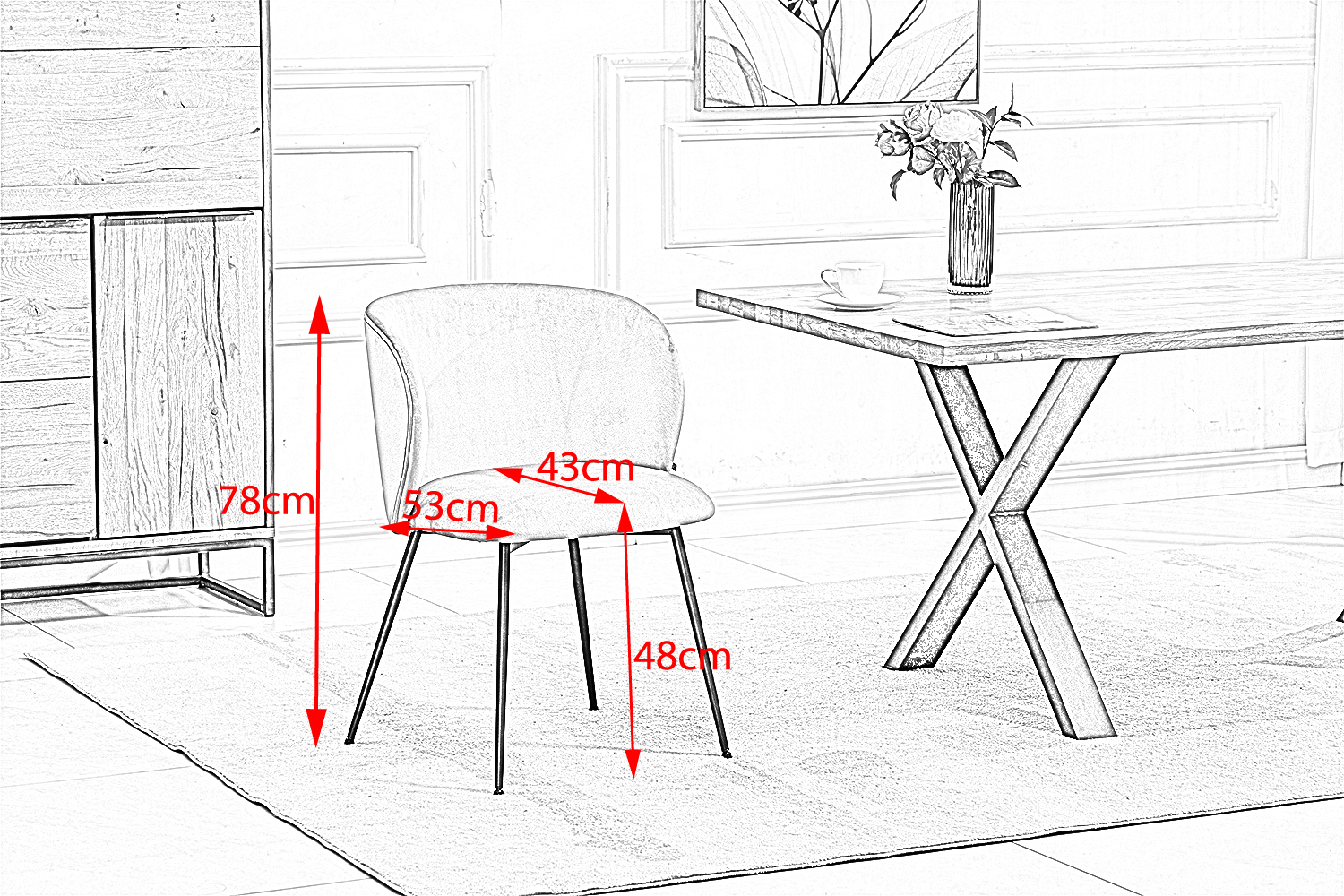 Mit präziser Maßarbeit beeindruckt der Stuhl durch ästhetisches Design. Abmessungen von 53 cm Breite, 53 cm Tiefe und 78 cm Höhe passen ideal zu verschiedenen Tischhöhen. Sitzhöhe von 48 cm und Sitztiefe von 43 cm bieten angenehmen Komfort und unterstützen eine aufrechte Haltung.