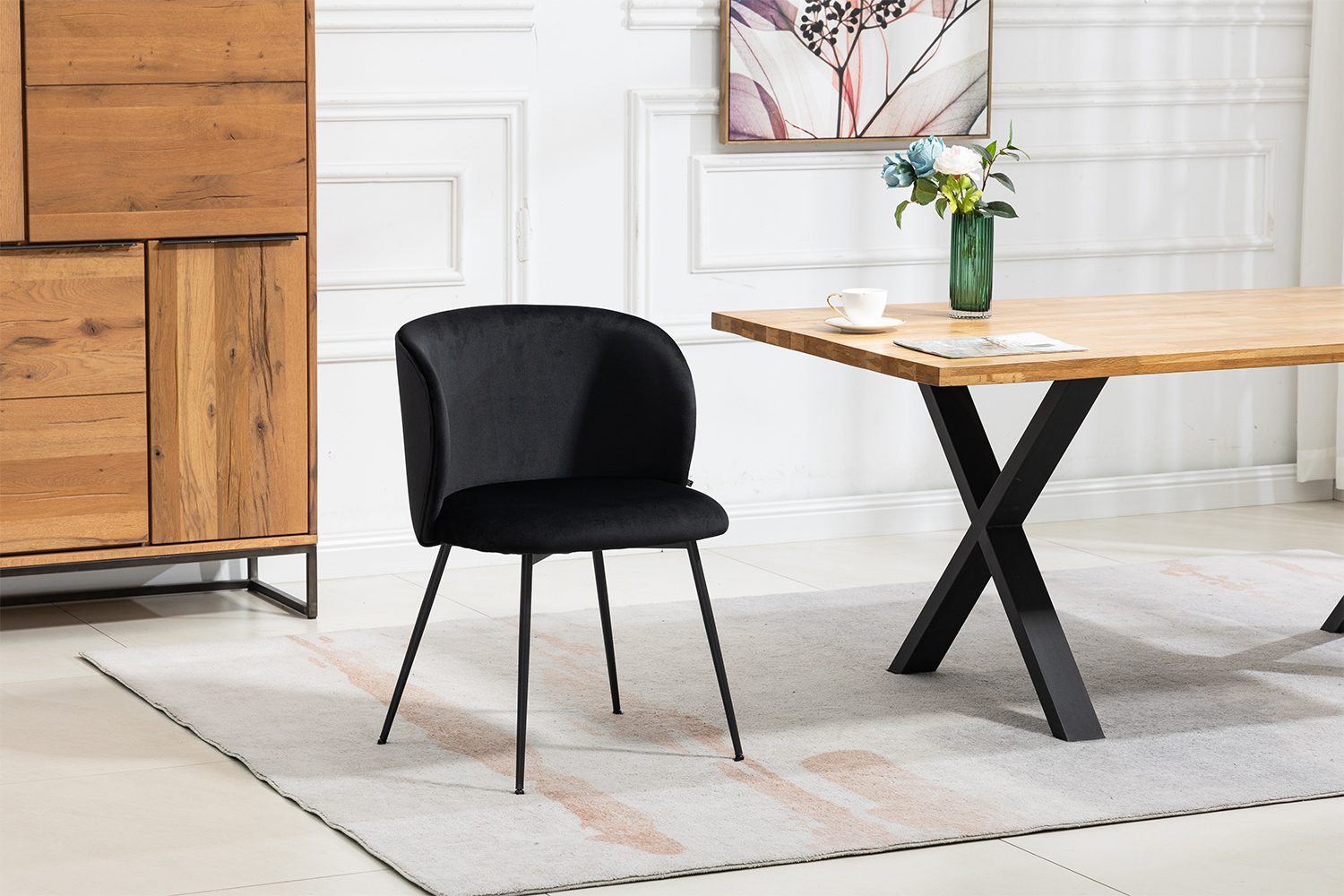 Der LENA Stuhl begeistert mit klaren Linien und minimalistischem Design. Ohne Armlehnen bietet er flexible Sitzmöglichkeiten mit festem Halt. Die Füße aus pulverbeschichtetem, schwarzem Stahl verleihen Stabilität und raffinierte Optik.