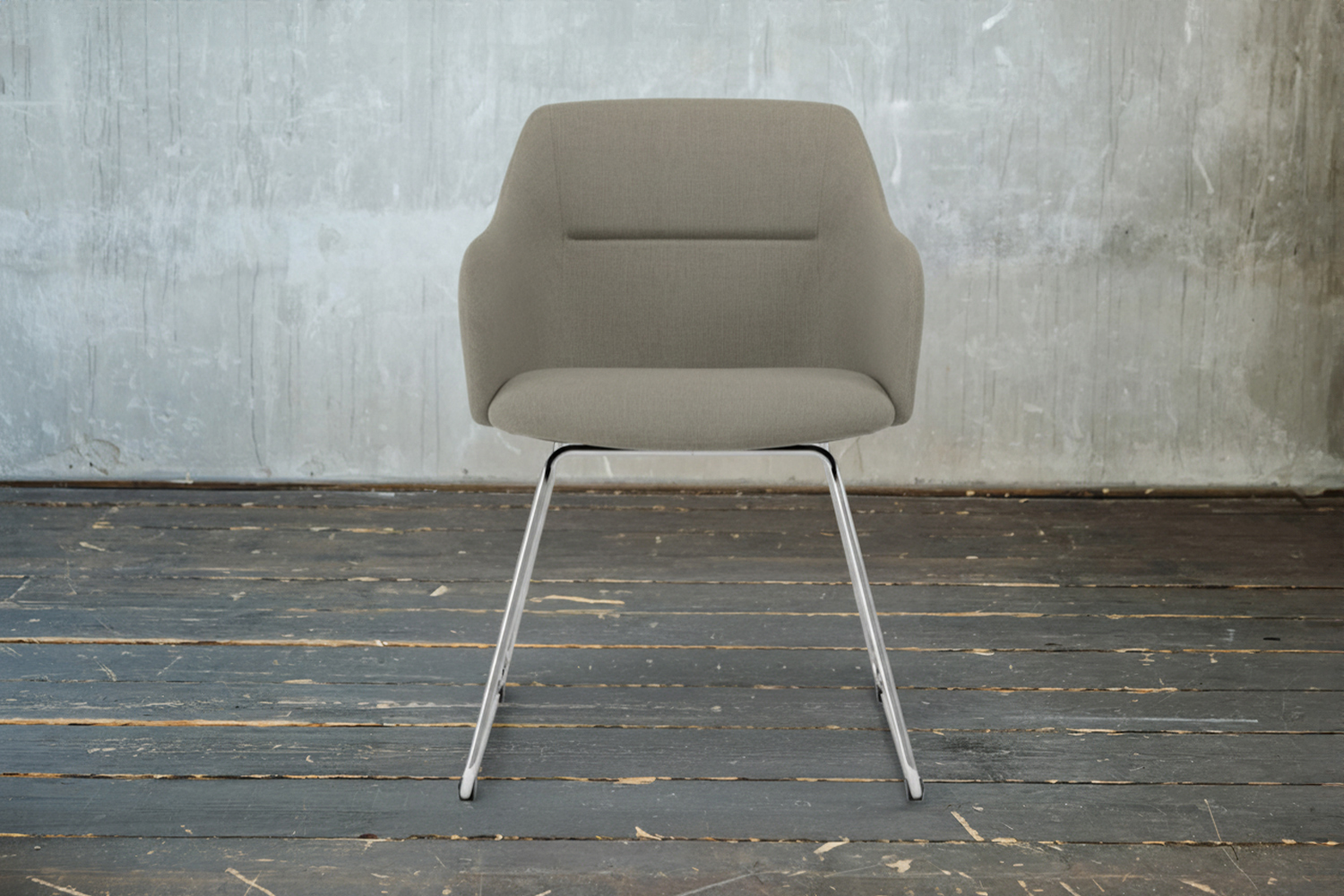 Der Esszimmerstuhl MALIM ist durch, den als Kufe geformten Fuß, ein absoluter Hingucker und liegt voll im Trend. Die Füße setzen sich farblich perfekt von der Sitzschale aus Stoff ab. Hier bleiben keinerlei Wünsche offen.