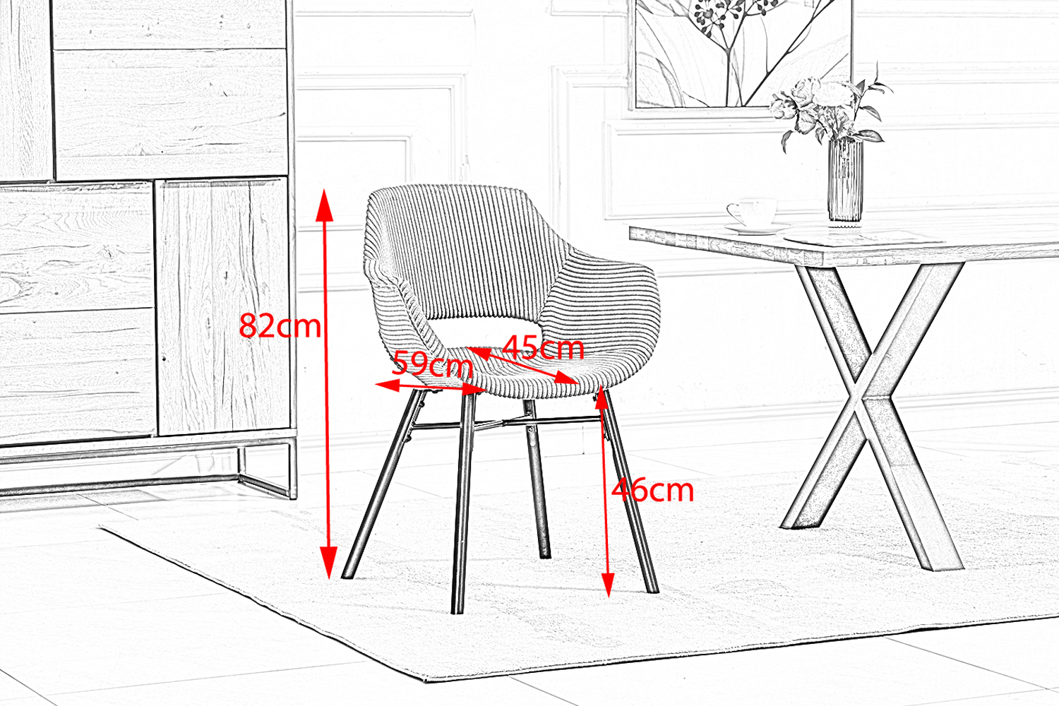 - Material Armlehne: Cord