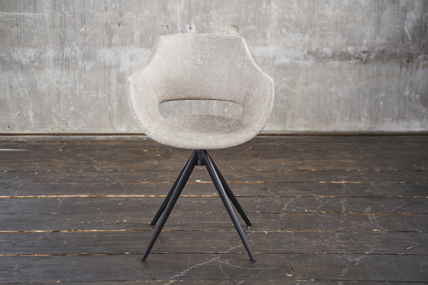 Bei diesen Stühlen handelt es sich um B-Ware aus Kundenrücksendungen, die gewisse kleinere Mängel aufweisen und daher von uns zu einem reduzierten Preis angeboten werden. Mögliche Mängel sind: Kratzer am Gestell, Druckstellen, leichte Verunreinigungen und Farbabweichungen auf der Polsterung sowie Risse im Unterbodenstoff. Bitte schauen Sie sich hierzu die Beispielbilder nach dem Hauptbild an.Der Stuhl ZAJA vereint industrielles und modernes Wohndesign. Hier können Sie sich bequem zurücklehnen und stilvoll speisen. Das Material ist sehr hochwertig verarbeitet und lässt sich problemlos reinigen. Der Stuhl ZAJA eignet sich für praktisch jeden Wohnbereich. Ob nun am Schreibtisch oder im Esszimmer überall macht der Stuhl aufgrund seines modernen Designs eine hervorragende Figur. Hier steht gemütlichen Stunden zum Arbeiten oder für die Freizeit nichts mehr im Wege. Das Highlight des Stuhls ist aber die Drehfunktion, mit der sich die Sitzposition um 360 Grad drehen lässt.