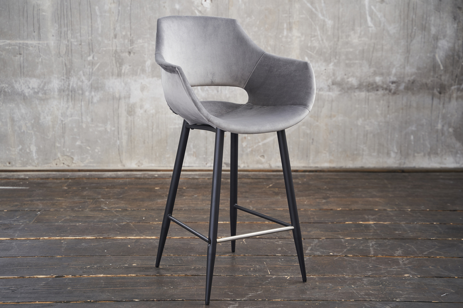 Produktinformationen "B-Ware KAWOLA Thekenhocker ZAJA Barstuhl Sitzhöhe 65 cm Velvet grau"