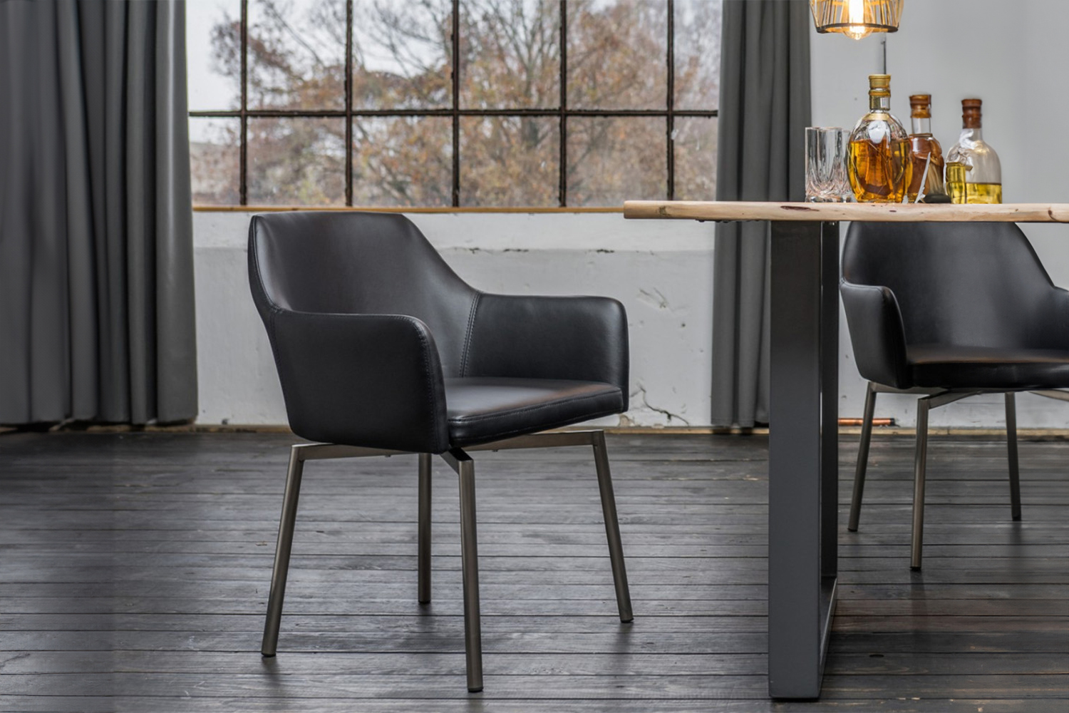 geeignet als Esszimmerstuhl, als Objektstuhl, für den Wartebereich, die Lobby oder als Konferenzstuhl Armlehnenhöhe: 62cm