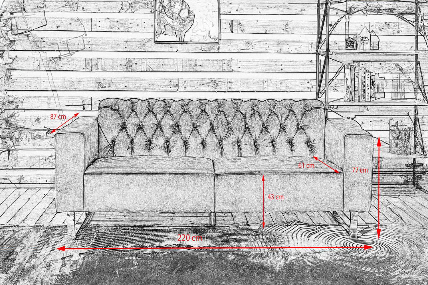 • Maße: H 77 x B 220 x T 87 cm