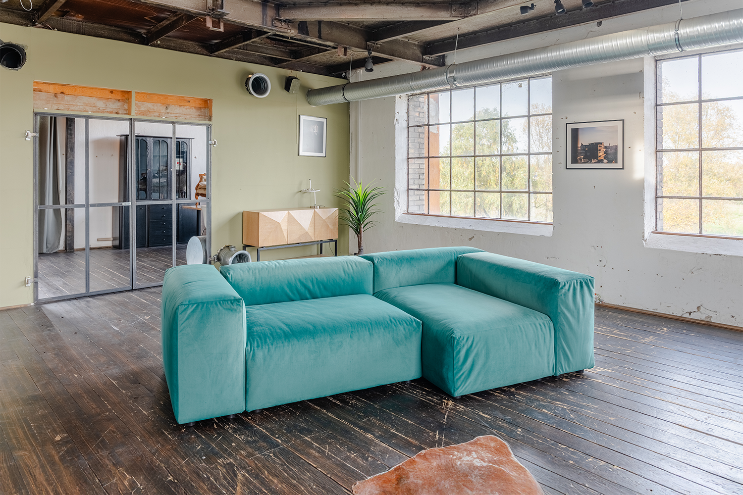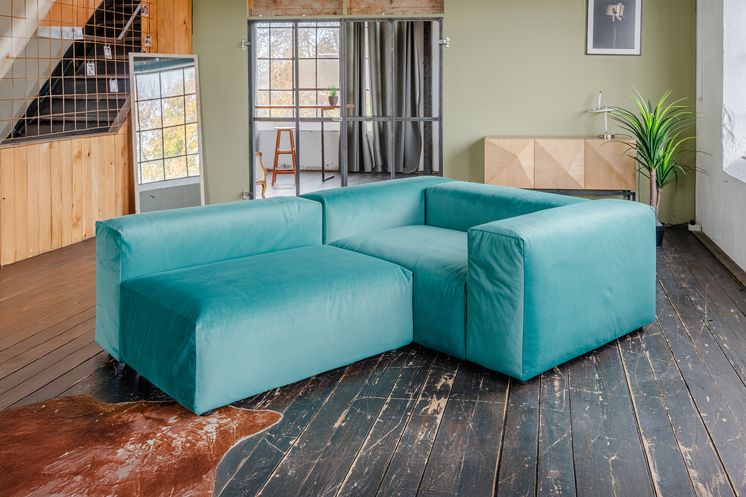 KAWOLA Sofa MIA Modulares Sofa 6-tlg. Velvet grün