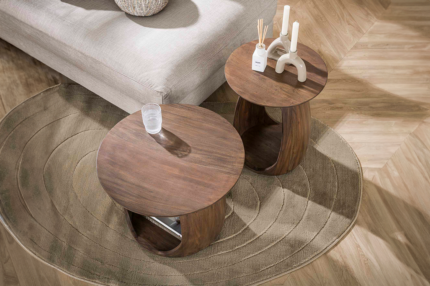 Ergänzende Details:Beistelltisch aus massivem Akazienholz mit mattem Finish Runde großzügige Tischplatte mit warmer Ausstrahlung Organische Formgebung sorgt für modernen Look Stabil und vielseitig als Couchtisch oder Beistelltisch nutzbar