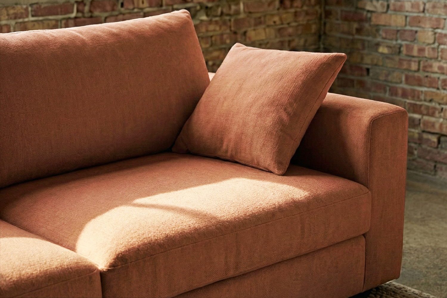 Der Bezug des Sofas zeichnet sich durch eine weiche, angenehme Haptik aus und vermittelt bereits beim ersten Kontakt ein hohes Maß an Komfort. Die fein strukturierte Oberfläche wirkt zugleich edel und zurückhaltend, wodurch sich das Sofa vielseitig kombinieren lässt. Die bequemen Sitz- und Rückenkissen sorgen für ein ausgewogenes Sitzgefühl und laden sowohl zum entspannten Zurücklehnen als auch zum längeren Verweilen ein.