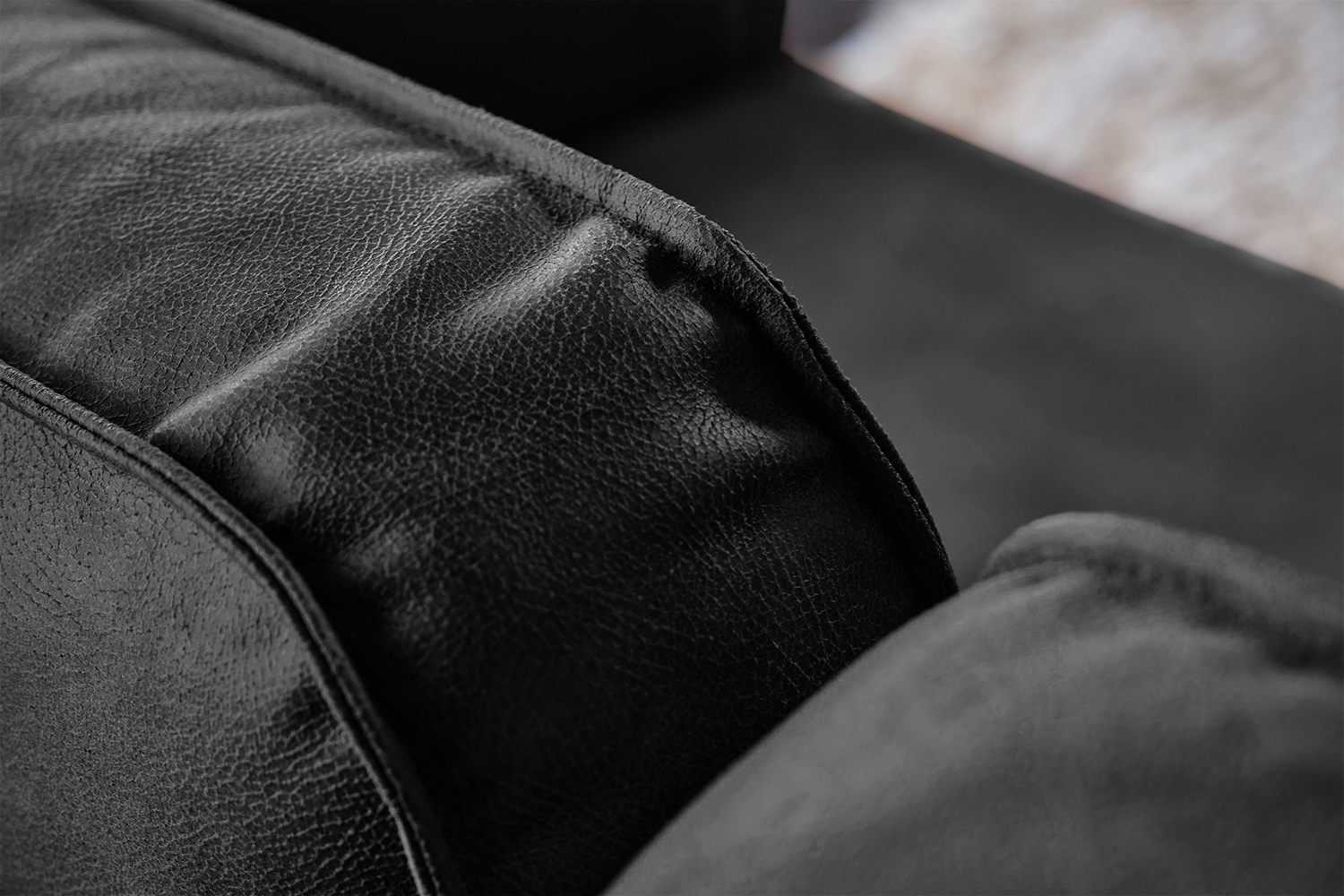 Das Sofa VILNIUS von KAWOLA bietet alle Stärken eines klassischen Ledersofas und noch einiges darüber hinaus. Der Bezug aus Lederfaserstoff ist eine innovative Alternative zu Echtleder: Er wird aus recycelten Lederfasern gefertigt, die mit natürlichen Bindemitteln und Textilfasern kombiniert werden. Das Ergebnis ist ein hochwertiges, strapazierfähiges Material mit authentischer Lederoptik und angenehm weicher Haptik. Lederfaserstoff ist pflegeleicht, formstabil und gleichzeitig atmungsaktiv.