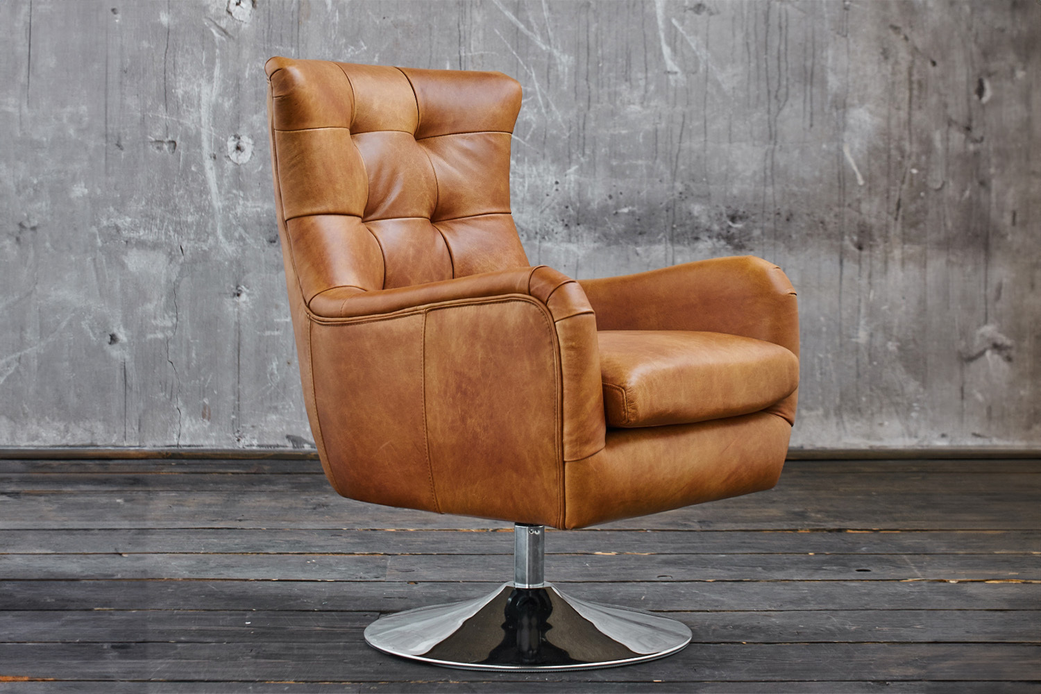 Der KAWOLA Sessel Relexa fällt durch sein markantes Aussehen extrem auf. Die Kombination aus einer ergonomischen Form und dicker Bepolsterung sorgt für einen enormen Sitzkomfort. Dies spiegelt sich auch in der Materialwahl wider, denn das weiche, sogenannte Vintage Leder mit dem der Sessel überzogen wurde fühlt sich angenehm auf der Haut an. Der verchromte Fuß gibt dem Sessel nicht nur einen frischen Kontrast zur großen Sitzefläche, er ist auch drehbar und sorgt für eine ausreichende Bewegbarkeit ohne die Sitzposition ändern zu müssen. Relexa können sie sowohl in ihrem Wohnzimmer einbinden als auch als einfachen Lesesesel nutzen.
