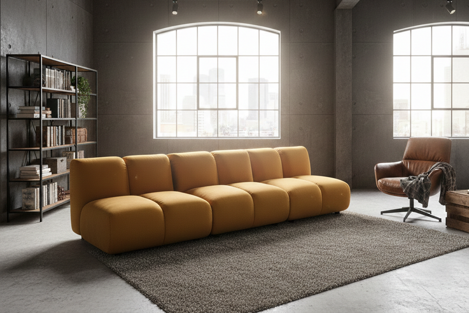 Diese Variante besteht aus drei geraden Sitzelementen und bietet eine besonders vielseitige Grundlage für flexible Wohn- und Einrichtungskonzepte. Ob als großzügiger Dreisitzer, als offene Sitzlandschaft oder in aufgelöster Anordnung – diese Konfiguration lässt sich individuell an unterschiedliche Raumsituationen anpassen. Die einzelnen Sitzelemente können gemeinsam genutzt oder auch separat platziert werden. So besteht beispielsweise die Möglichkeit, drei eigenständige Sessel zu stellen oder zwei Sessel mit einem kompakten Zweisitzer zu kombinieren. Dadurch eignet sich diese Variante ideal für variable Wohnbereiche. Zusätzlich besteht die Möglichkeit, die geraden Sitzelemente als auch das dazu passende Eckelement separat zu bestellen, um die bestehende Konfiguration jederzeit zu erweitern. Auf diese Weise lässt sich das Sofa flexibel vergrößern und z.B. in ein elegantes Ecksofa oder sogar eine großzügige Wohnlandschaft verwandeln. Mit dieser Variante des Modulsofas LAYLA entscheiden Sie sich für eine vielseitige Sofalösung, die Komfort und maximale Gestaltungsfreiheit auf überzeugende Weise vereint.
