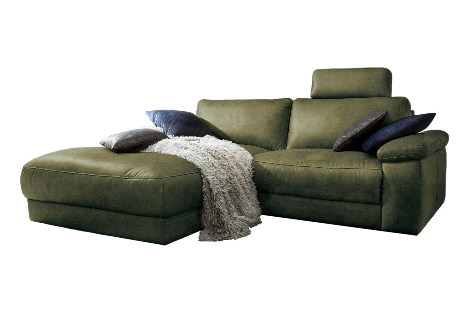 Produktinformationen "KAWOLA Sofa LOLA Ecksofa Stoff moosgrün mit motorischer Relaxfunktion"