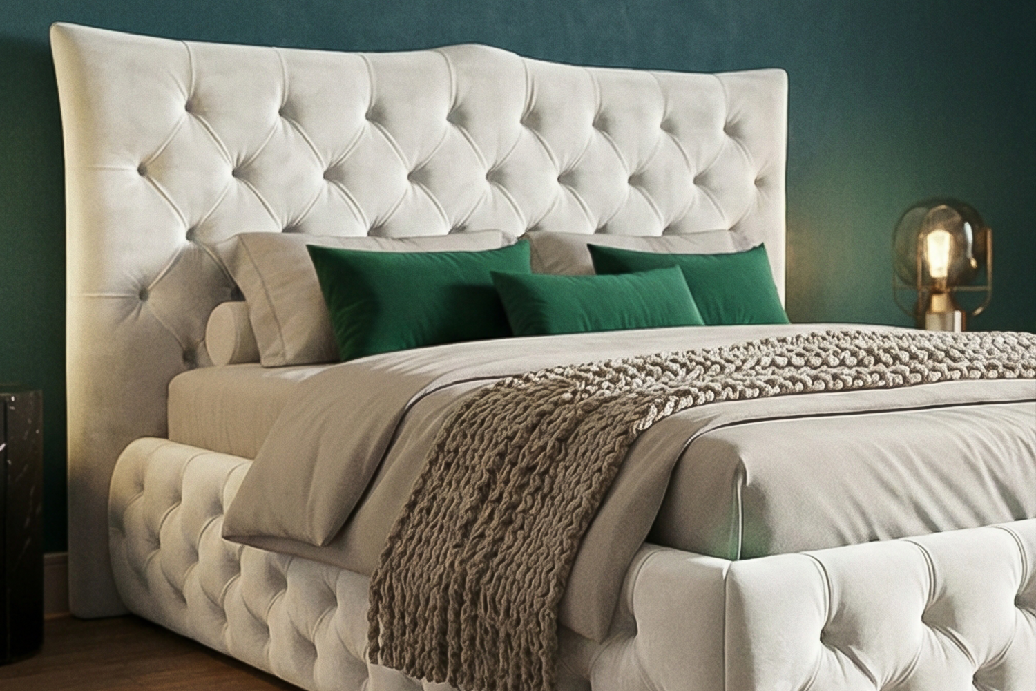 Der Bezug aus hochwertigem Velvet rundet die luxuriöse Anmutung perfekt ab. Die samtig-weiche Oberfläche fühlt sich angenehm an und erzeugt durch ihren feinen Schimmer eine lebendige Tiefenwirkung. Je nach Lichteinfall verändert sich die Optik dezent, wodurch das Bett besonders elegant wirkt. Velvet steht nicht nur für Stil und Komfort, sondern überzeugt auch durch seine Strapazierfähigkeit und angenehme Haptik im täglichen Gebrauch.