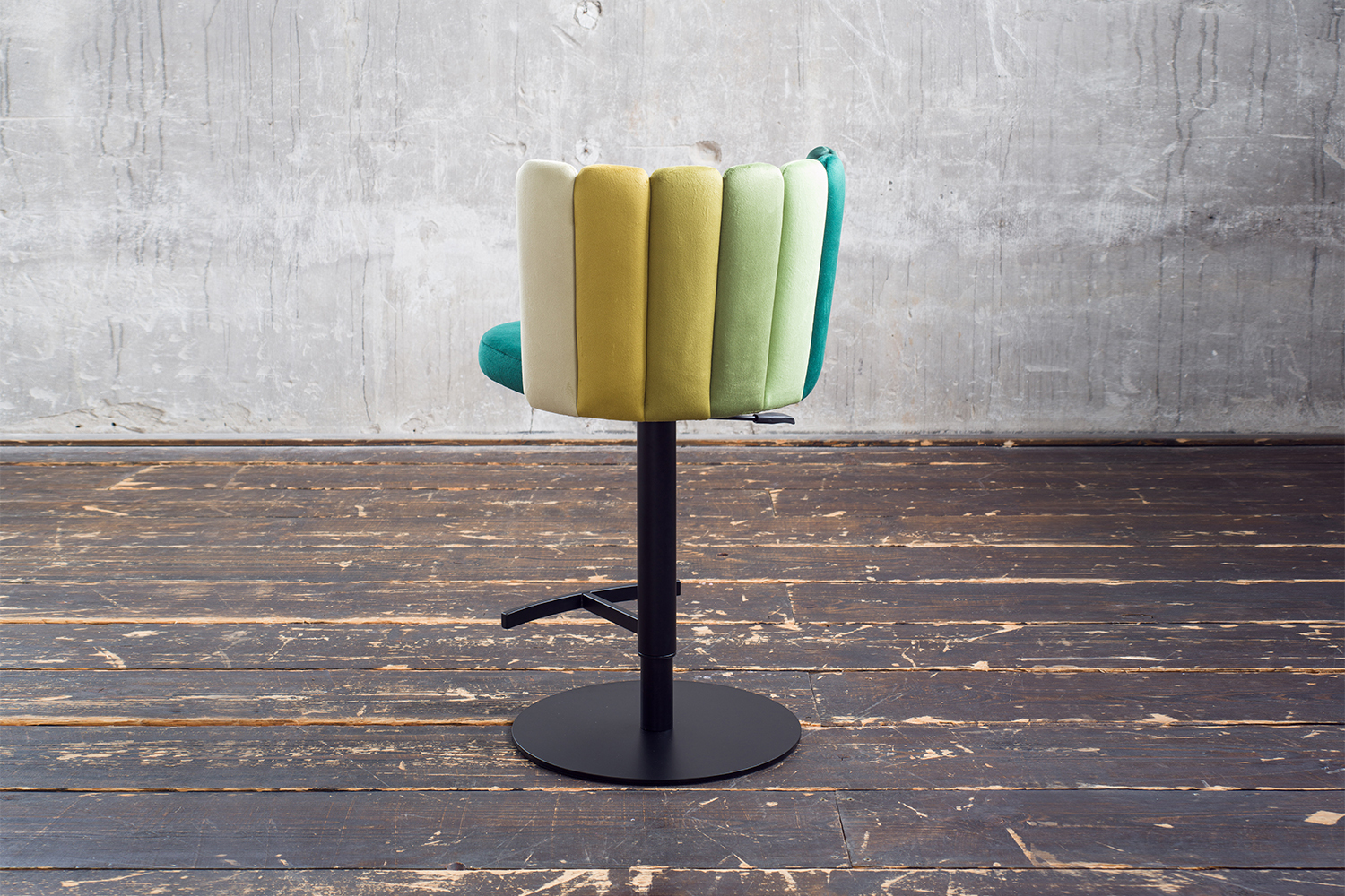 Der Barhocker JADA von KAWOLA vereint angenehmen Sitzkomfort und modernes Wohndesign. Hier können Sie sich bequem niederlassen und stilvoll einen Drink genießen - ganz so wie in Ihrer Lieblingsbar. Der Thekenhocker kann in der Höhe verstellt werden - von 85 cm bis hin zu 109 cm. Somit können Sie den Stuhl an Ihre individuellen Bedürfnisse anpassen, mit einer variablen Sitzhöhe von bis zu 81 cm. Mit seiner 360° Drehfunktion bietet er zusätzlich ein Höchstmaß an Flexibilität und Bewegungsfreiheit. Der Bezugsstoff aus Velvet ist sehr hochwertig verarbeitet, und das aufwendig gestaltete Design der Rückenlehne in verschiedenen Farbtönen verleiht dem Stuhl seinen besonderen Look. Mit seinem eleganten Design und den praktischen Funktionen bringt der Barhocker JADA echtes Lounge-Ambiente in Ihr Zuhause.Produktdetails