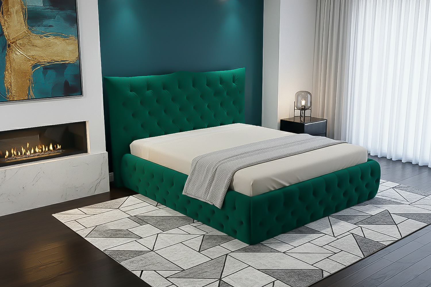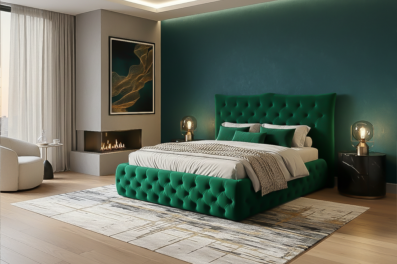 Der Bezug aus hochwertigem Velvet rundet die luxuriöse Anmutung perfekt ab. Die samtig-weiche Oberfläche fühlt sich angenehm an und erzeugt durch ihren feinen Schimmer eine lebendige Tiefenwirkung. Je nach Lichteinfall verändert sich die Optik dezent, wodurch das Bett besonders elegant wirkt. Velvet steht nicht nur für Stil und Komfort, sondern überzeugt auch durch seine Strapazierfähigkeit und angenehme Haptik im täglichen Gebrauch.