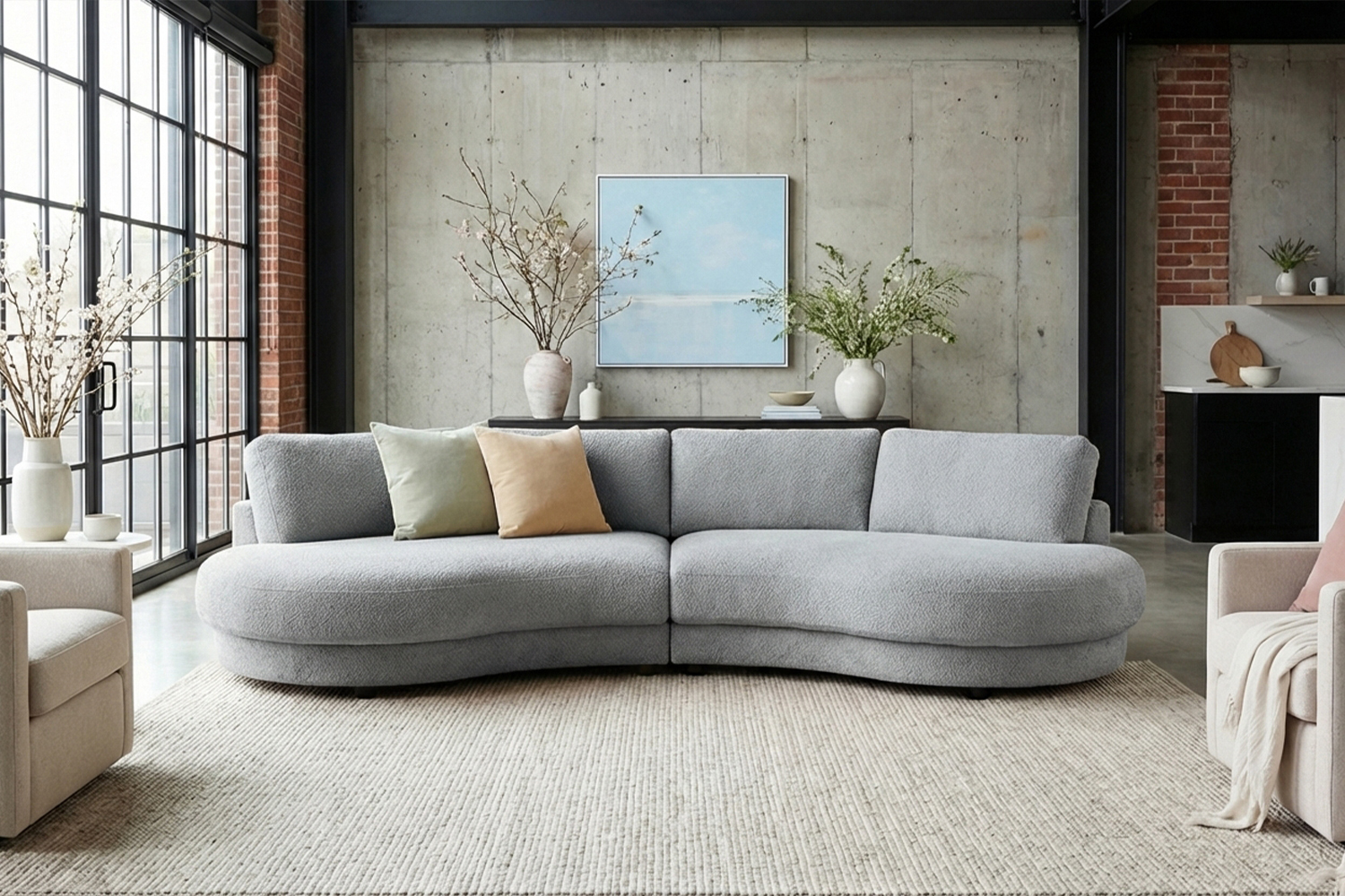 Das Big Sofa PADANA von KAWOLA ist ein echtes Statement-Piece für moderne Wohnräume. Mit seiner beeindruckenden Breite von 410 cm und einer komfortablen Tiefe von 166 cm bietet es außergewöhnlich viel Platz zum Entspannen, Loungen und Zusammensein. Die sanft geschwungene, organische Form verleiht dem Sofa eine weiche, einladende Ausstrahlung und macht es zum stilprägenden Mittelpunkt jedes Wohnbereichs.