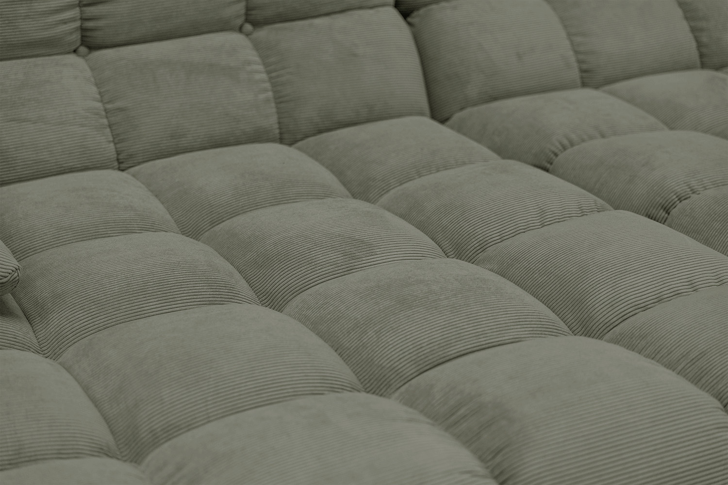 Der Bezug aus hochwertigem Feincord begeistert mit seiner weichen Haptik und verleiht dem Sofa einen trendigen, wohnlichen Look. Gleichzeitig ist das Material strapazierfähig und pflegeleicht – ideal für den Alltag.