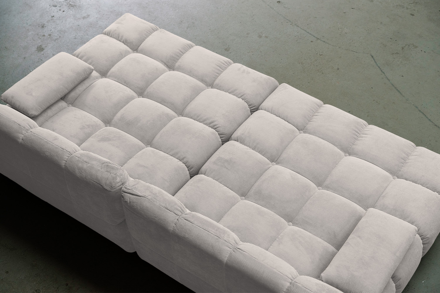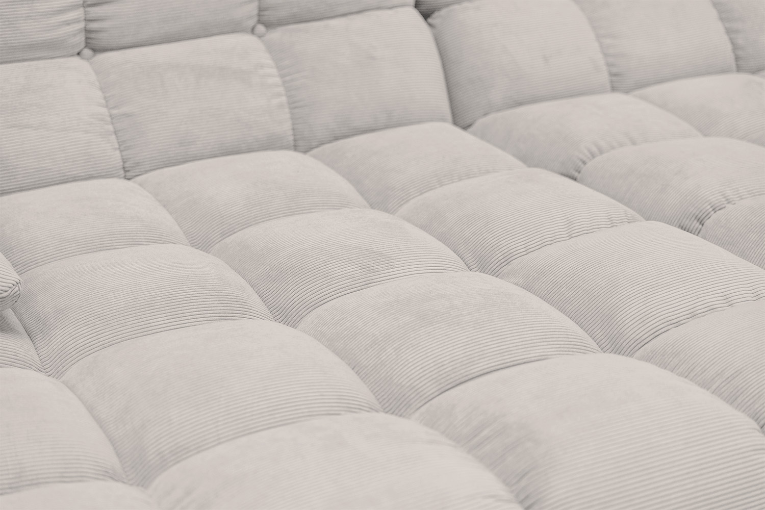 Der Bezug aus hochwertigem Feincord begeistert mit seiner weichen Haptik und verleiht dem Sofa einen trendigen, wohnlichen Look. Gleichzeitig ist das Material strapazierfähig und pflegeleicht – ideal für den Alltag.