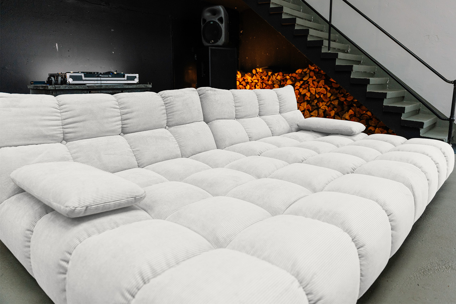 Das Big Sofa VIVIEN ist der perfekte Rückzugsort für alle, die viel Platz und eine moderne, gemütliche Ausstrahlung in ihrem Wohnzimmer schätzen.