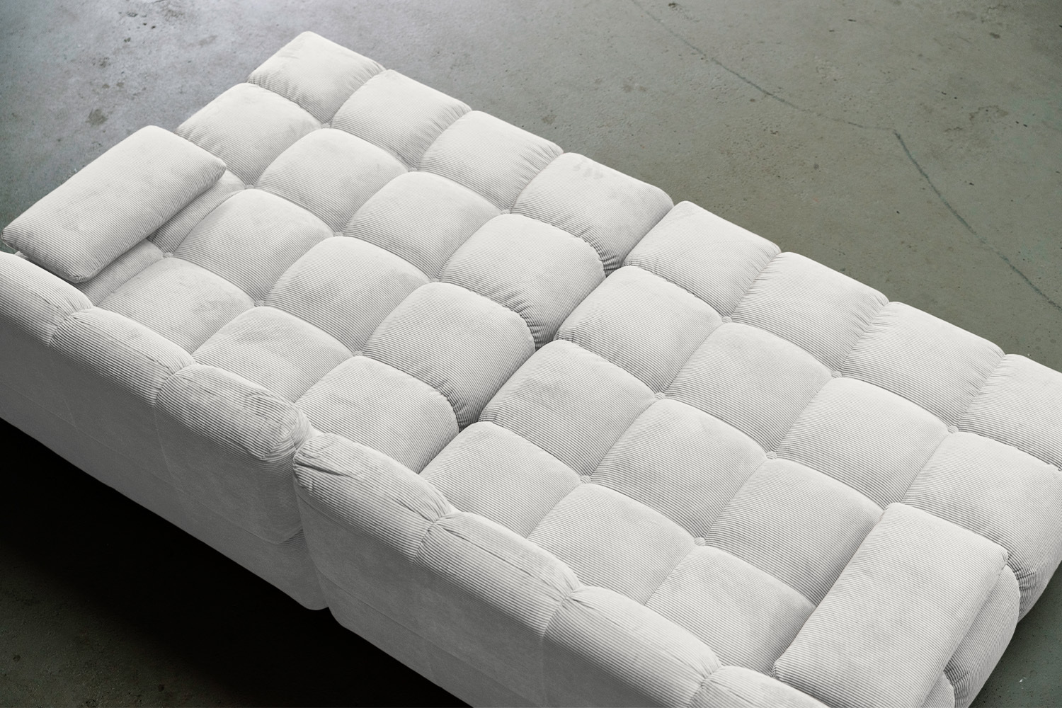 Der Bezug aus hochwertigem Feincord begeistert mit seiner weichen Haptik und verleiht dem Sofa einen trendigen, wohnlichen Look. Gleichzeitig ist das Material strapazierfähig und pflegeleicht – ideal für den Alltag.