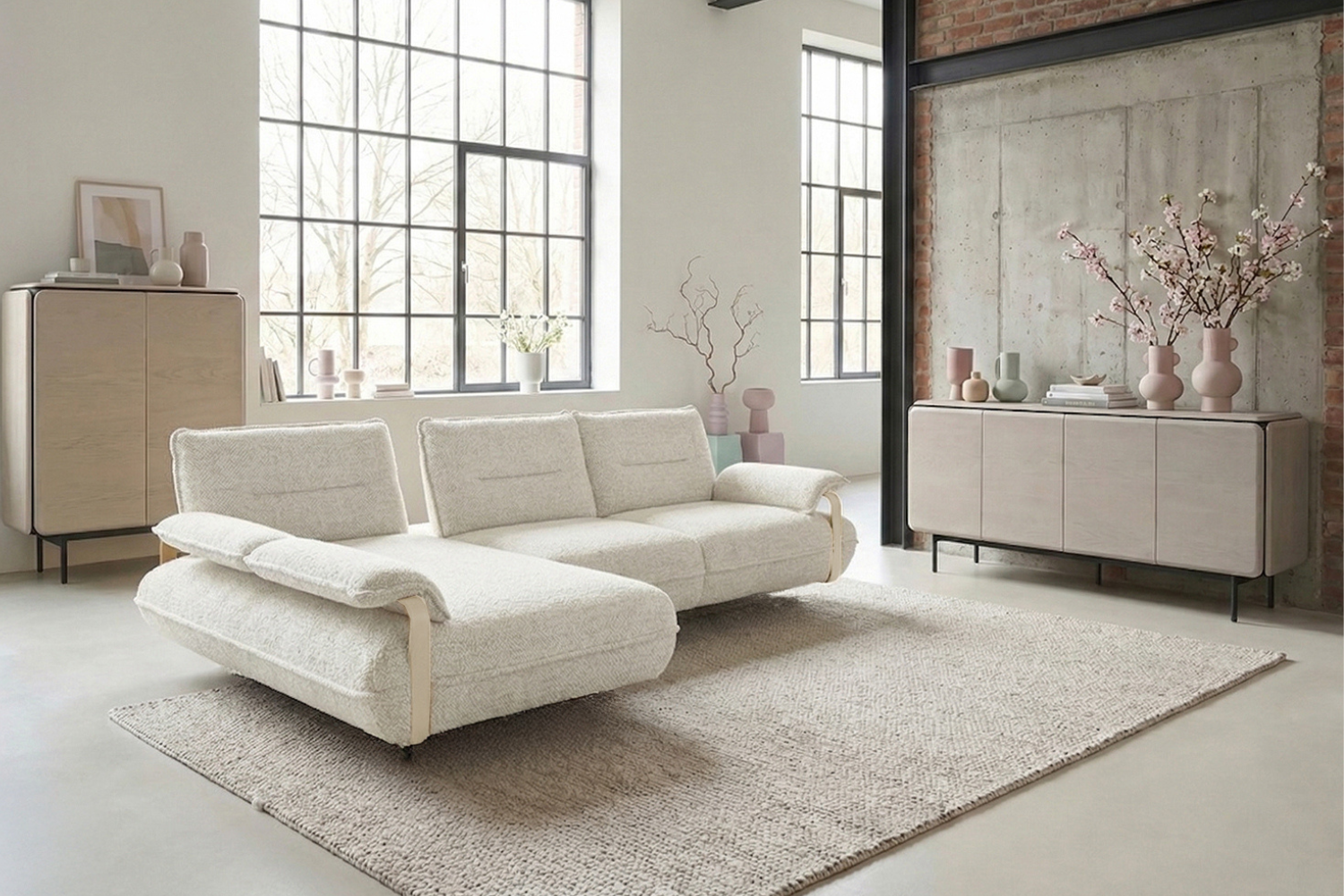 Das Ecksofa ANISSA von KAWOLA verbindet modernes Design mit durchdachtem Sitzkomfort und einer hochwertigen Verarbeitung. Mit seiner markanten Formensprache und den eleganten Metallspangen an den Armlehnen wird ANISSA schnell zum stilvollen Mittelpunkt Ihres Wohnbereichs.