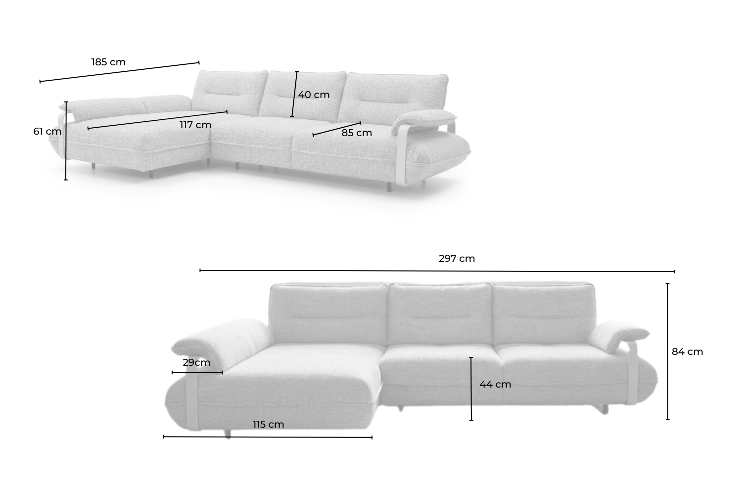- Breite Armlehne: 29 cm