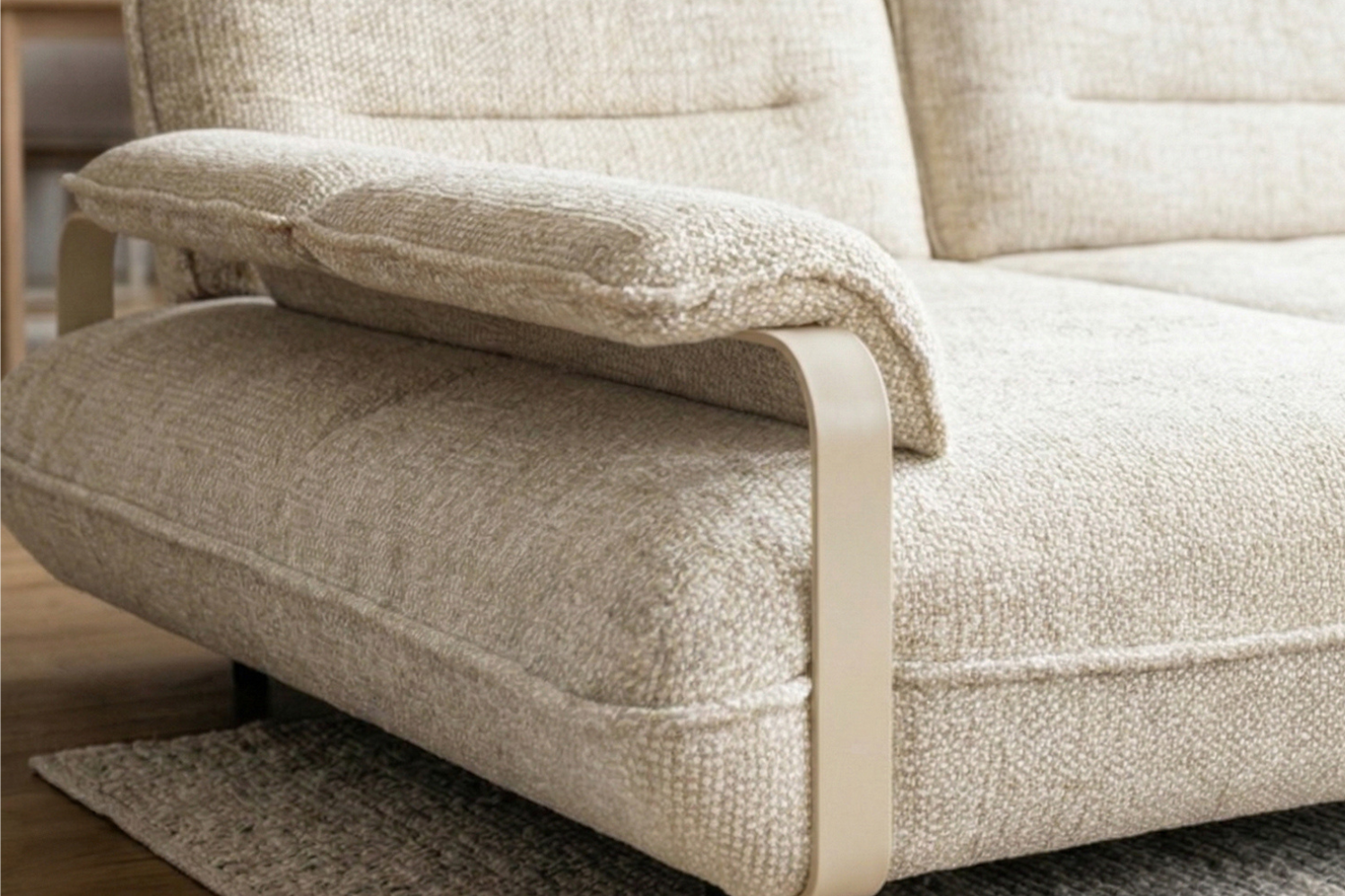 Des Weiteren kann das Armlehnenkissen des 2-Sitzers individuell auf der Metallspange positioniert werden und lässt sich so flexibel an Ihre Sitzposition anpassen. Beim Longchair ist das Armlehnenkissen jedoch langgezogen und fest integriert.